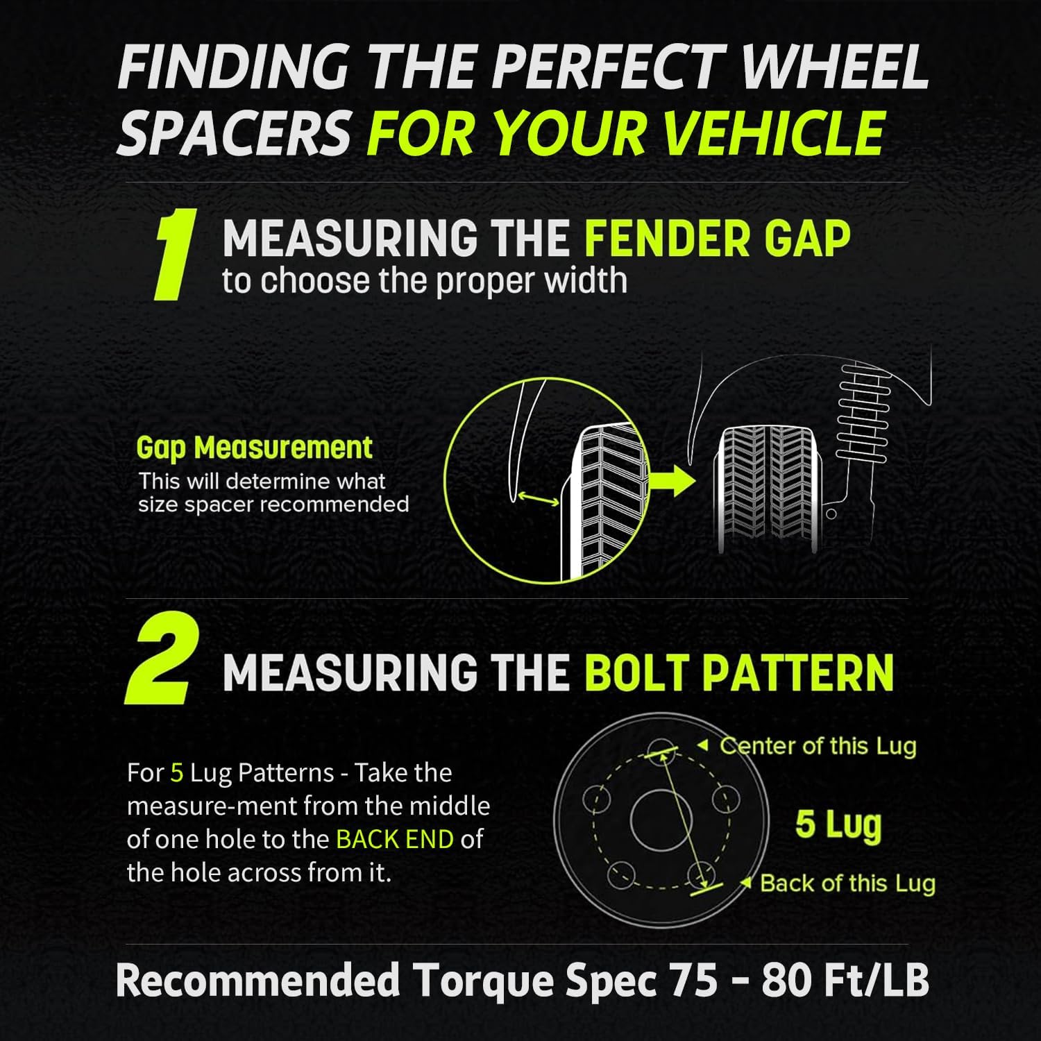 - Instalación: tus tacos de rueda de fábrica pueden extenderse más allá de la superficie de los espaciadores de rueda. En este caso, necesitarás: 1) Acortar los pernos de fábrica. 2) Las ruedas necesitan tener las ranuras abiertas (cavidades) entre los agujeros de montaje. 3) Compra un juego de tacos más cortos y reemplazalos con los tacos de fábrica