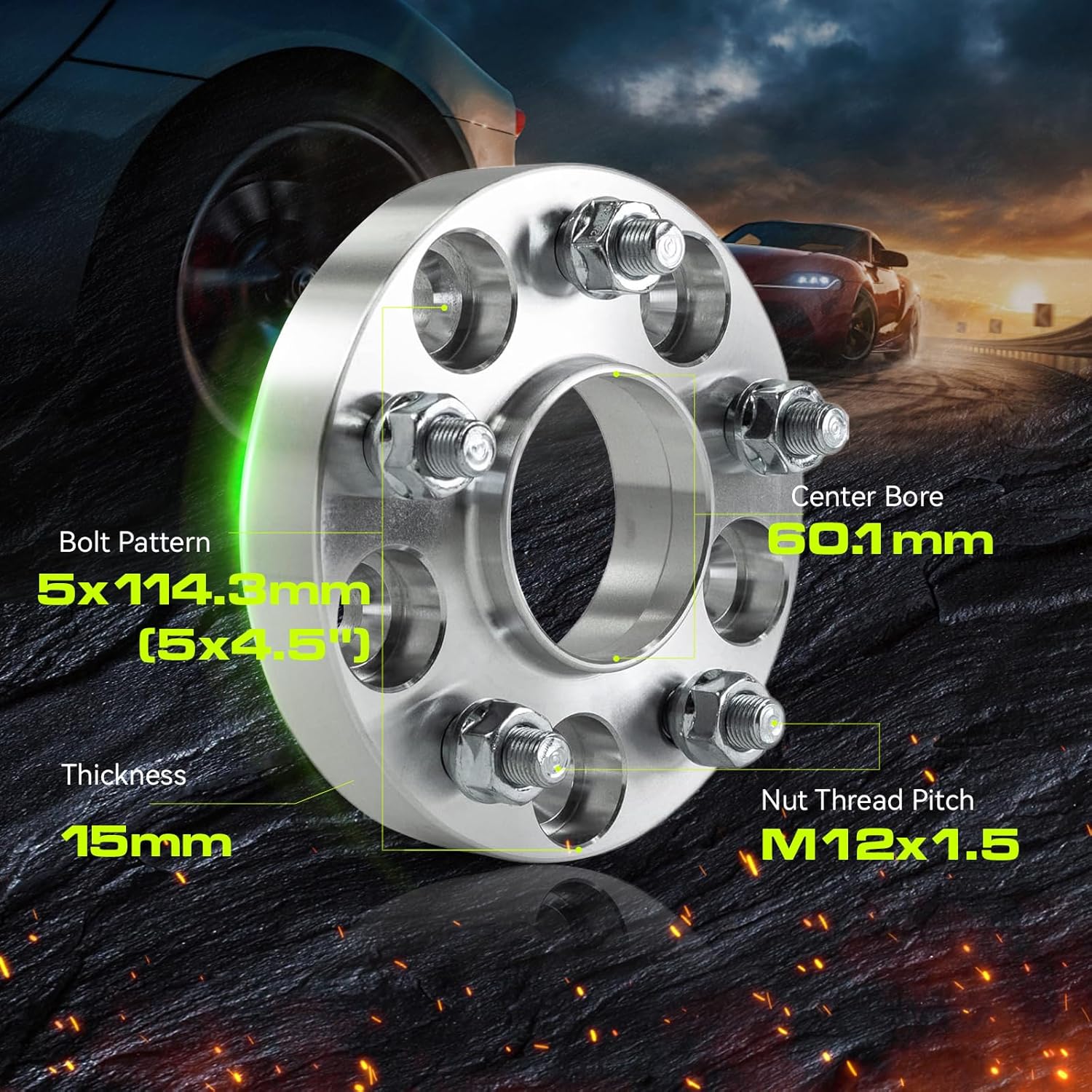 2pcs 15 mm de espesor Rueda espaciadores | 5 x 114,3 12,7 x 11,4 cm hubcentric 60,1 Hub | 12 x 1,5 Stud.