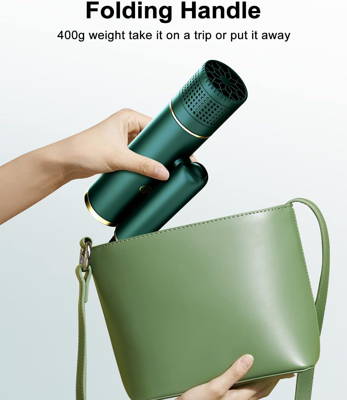 - Plegable, compacto y ligero: la secadora de pelo plegable es ligera (0.88 libras) y el tamaño compacto es de 7.67 x 5.11 x 2.08 pulgadas. Es fácil de transportar y almacenar y no ocupa espacio en casa. El secador de pelo plegable de viaje con nuestra bolsa de almacenamiento es ideal para viajes de negocios o viajes. Adecuado para el hogar, dormitorio escolar, uso en el gimnasio y peluquería para peinar.