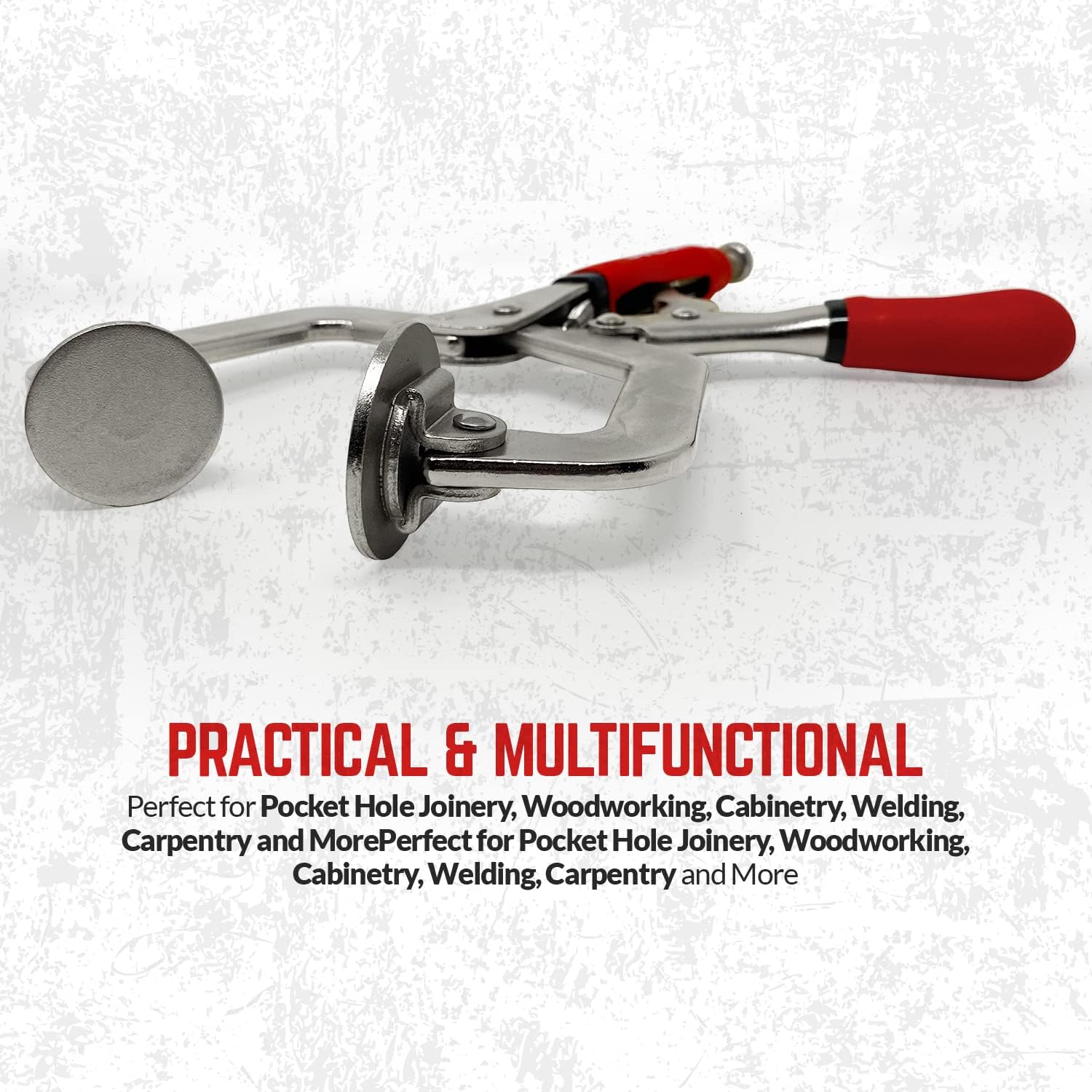 - U adición perfecta a tu tienda de carpintería: Capacidad de la mandíbula (76 mm). Las abrazaderas faciales Sandor de 3 pulgadas son capaces de manejar piezas de trabajo de ha 2-3/4 pulgadas. grueso y u variedad de materiales. Perfecto hacer el trabajo Ideal : reparaciones de bricolaje, armarios, carpintería de tornillo de bolsillo y carpintería. Compatible para su uso con el sima Kreg R3, Jr Pocket, Hole Jig.