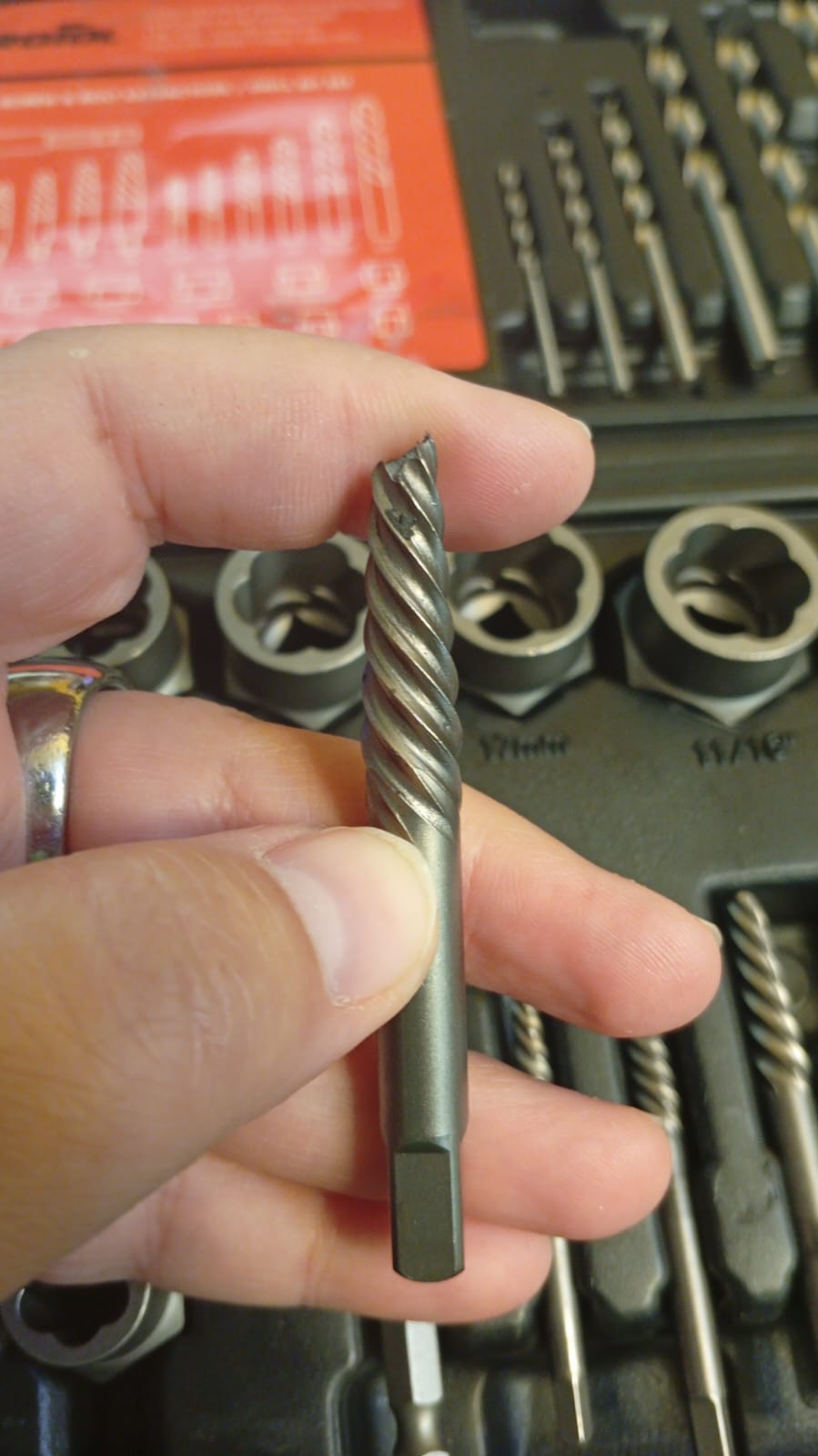 - Nota: Las brocas de cobalto no deben usarse para acero inoxidable. El extractor de pernos con diseño único de rosca interna en forma de ciruela proporciona un excelente par y se puede utilizar para rotar sujetadores con pernos profundos.