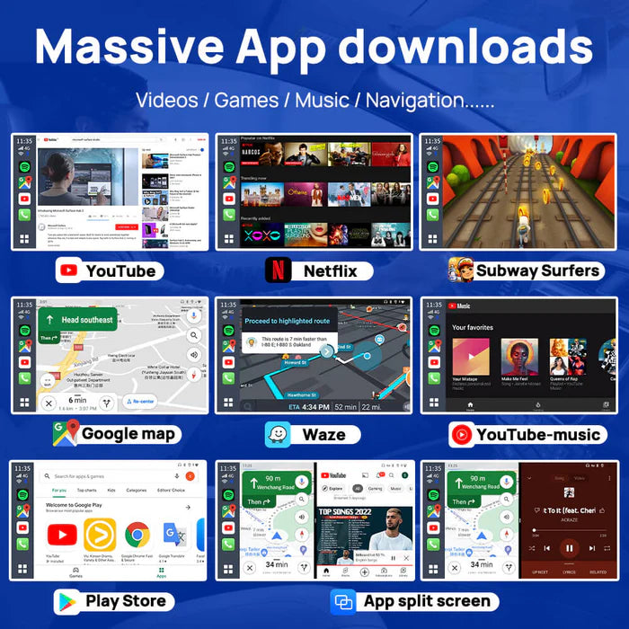 Carlinkit AI box Tbox Plus es compatible con CarPlay y Android Auto inalámbricos . Es compatible con iPhone y Android. Puedes descargar cualquier aplicación desde Google Play Store para mejorar tu experiencia de conducción y ampliar el sistema de infoentretenimiento de tu coche.