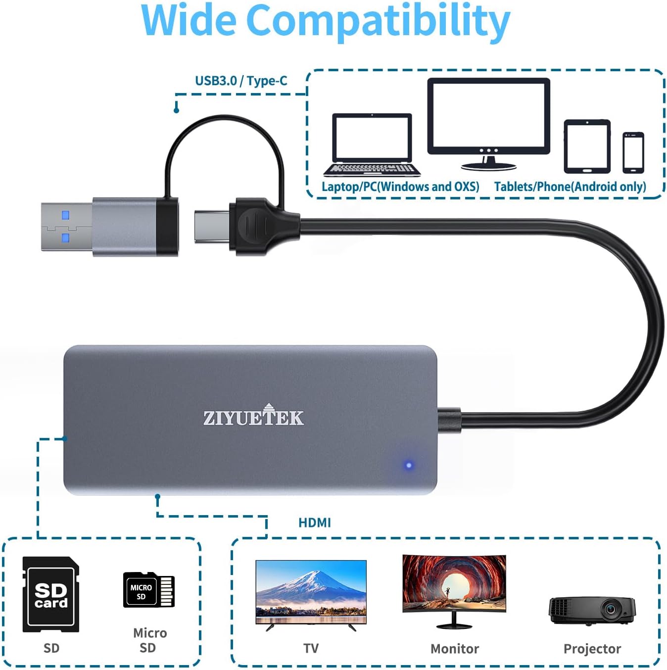 - Dos tipos de soporte de interfaz: este adaptador tiene dos puertos de acceso, USB 3.0 y tipo C, por lo que puede funcionar no solo en computadoras antiguas con solo puertos USB-A, sino también en computadoras nuevas con solo puertos tipo C o Thunderbolt. Al mismo tiempo, puede funcionar en tabletas o teléfonos Android con puertos de carga tipo C, un dispositivo y múltiples propósitos.