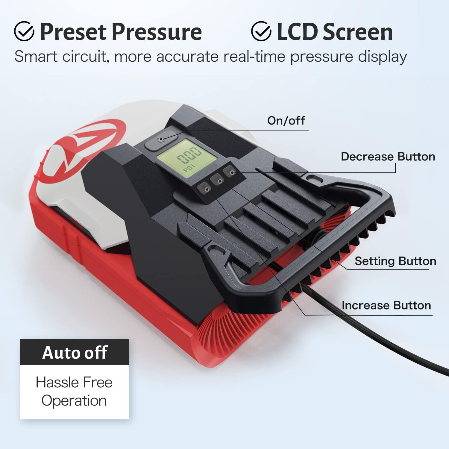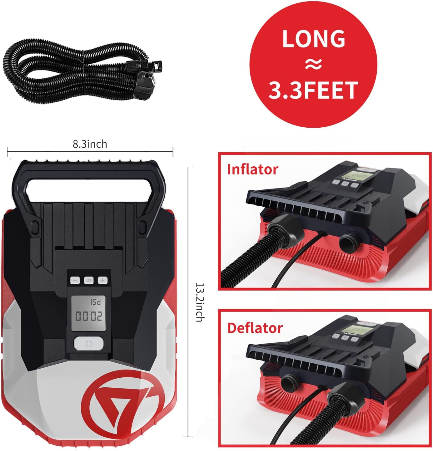 - LCD y apagado automático: visualización digital integrada y monitoreo de presión en tiempo real, bomba de aire eléctrica para inflable soporta la presión preestablecida y la parada automática. Excelente disipación de calor.