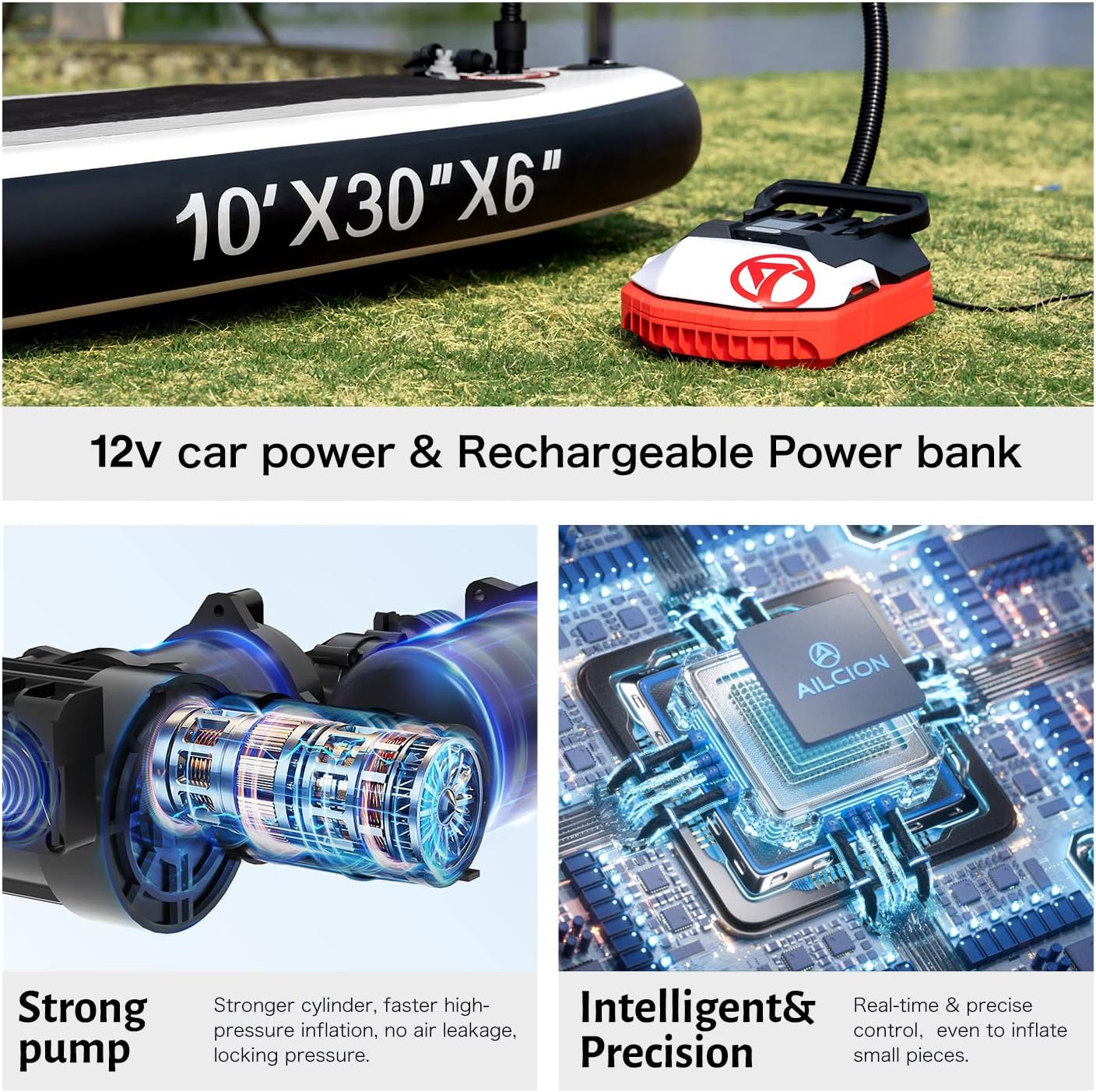 AILCION - Bomba eléctrica para tabla de remo, bomba de aire SUP para inflador y desinflador de tablas de remo con conector de coche de 12 V