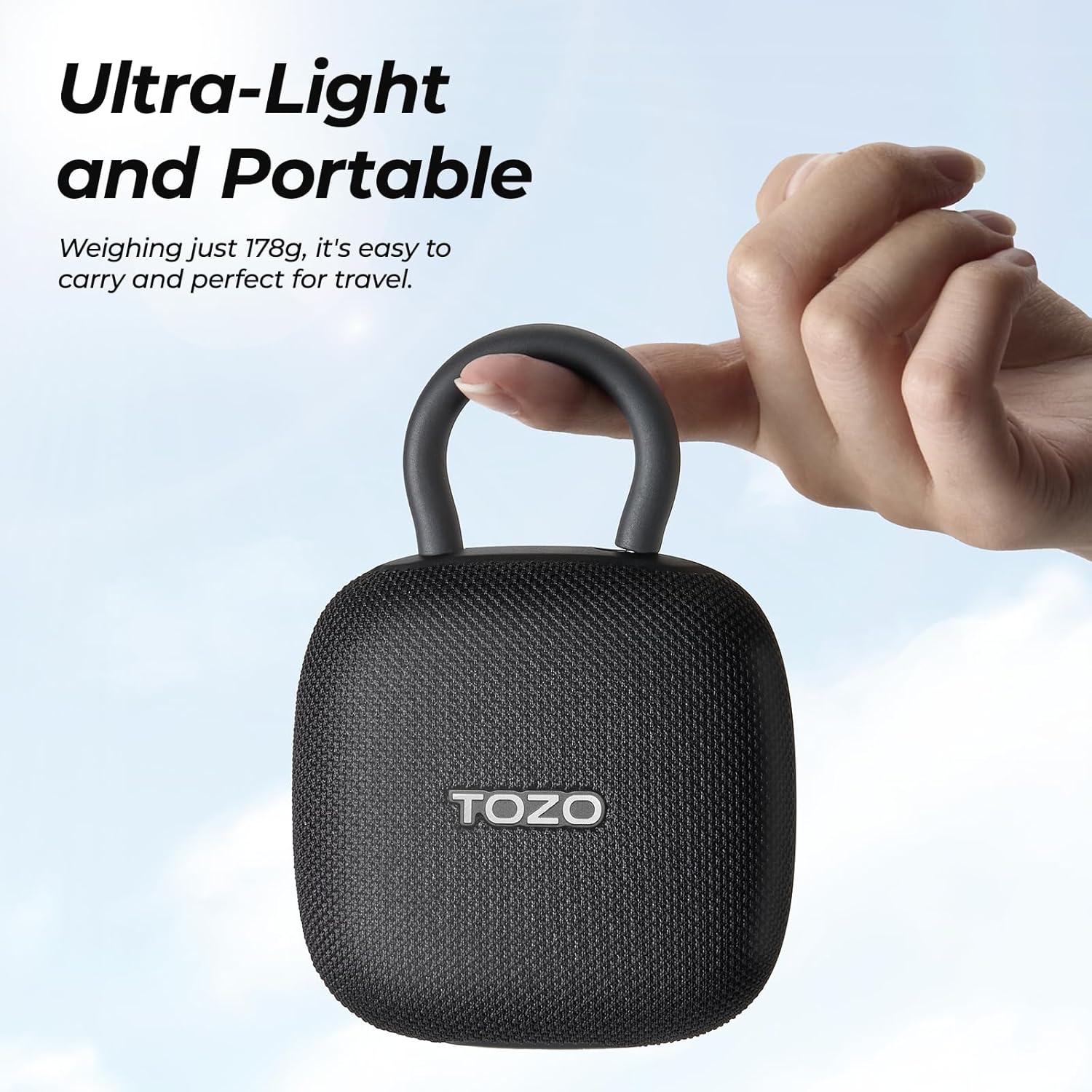 - Mini diseño portátil: el altavoz portátil TOZO PE1 cuenta con un diseño portátil y mini, con dimensiones de 5.079 x 3.543 x 1.732 in, incluso más pequeñas que tu palma. Puedes colgarlo en una mochila o guardarlo en tu bolsillo para una fácil portabilidad.