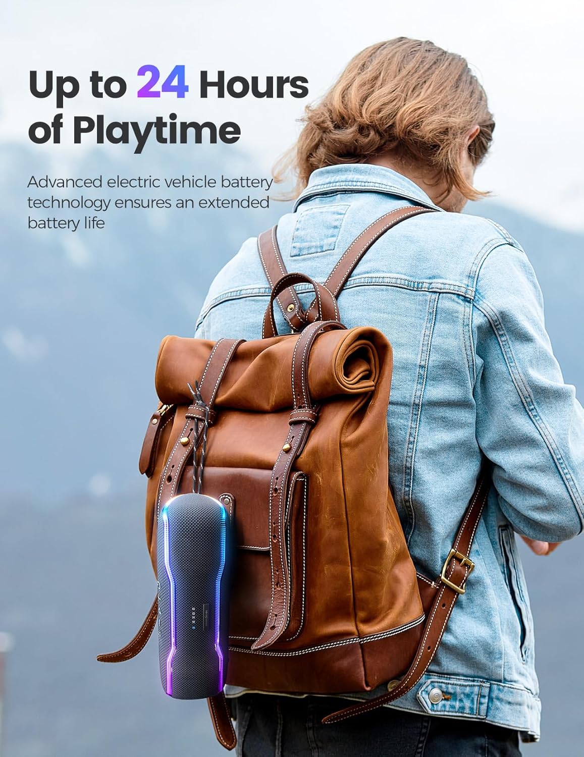 - Bluetooth 5.3 y hasta 24 horas de reproducción: Bluetooth 5.3 proporciona un increíble alcance inalámbrico Bluetooth de hasta 100 pies desde tu dispositivo. Y este altavoz portátil inalámbrico Bluetooth dura todo el día con hasta 24 horas de tiempo de reproducción por carga. Puedes encender/apagar las luces multicolor y dos luces de altavoz ocultas haciendo clic en el "botón de luz" en la superficie para adaptarse a tus necesidades y prolongar la duración de la batería. El tiempo de reproducción real varía según el nivel de volumen, el contenido de audio y el uso.