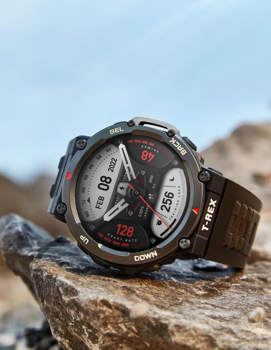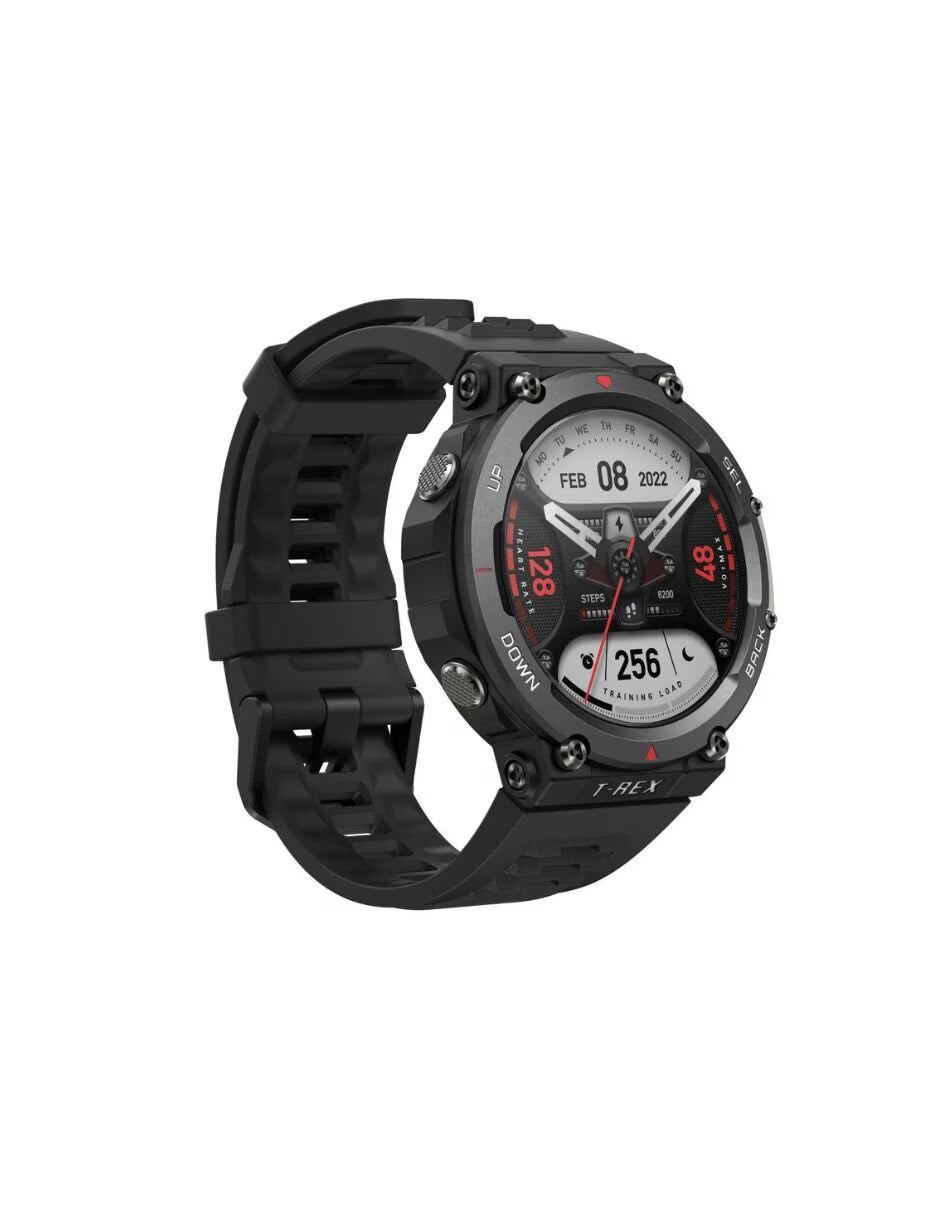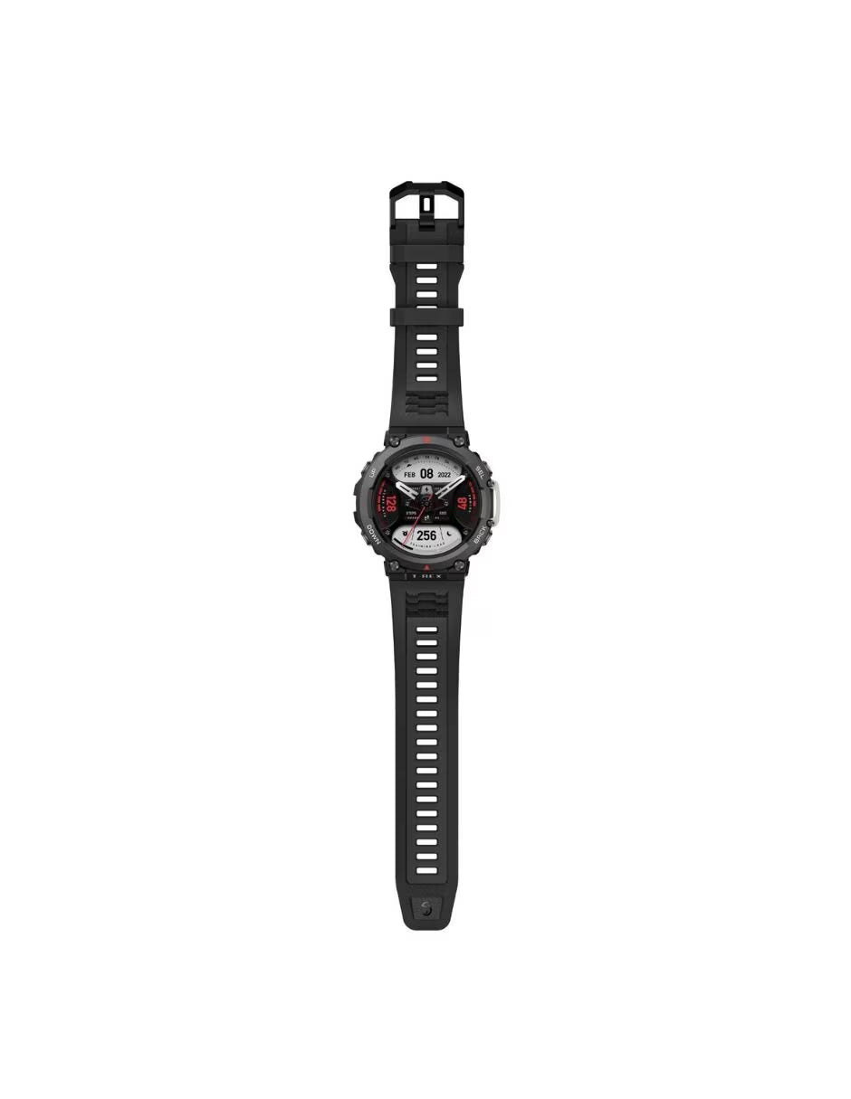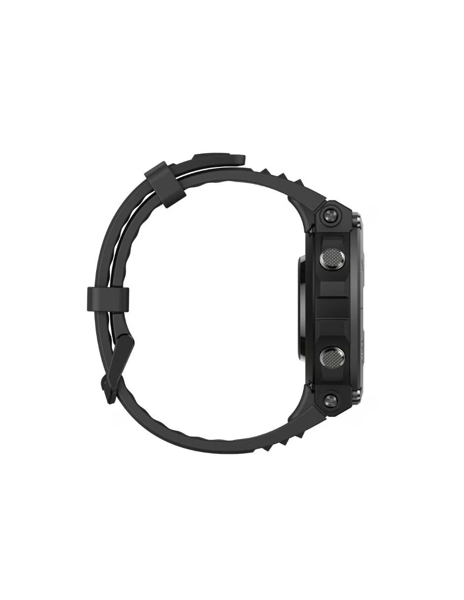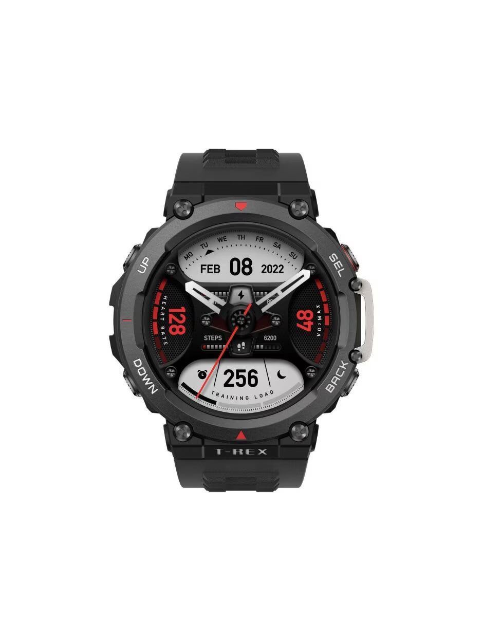 - El Smartwatch T-Rex 2 es el titán de la resistencia con 15 certificaciones militares (MIL-STD-810). Soporta golpes, humedad, hielo y condiciones extremas de temperatura. El aspecto audaz y vanguardista está inspirado en el espíritu de la naturaleza. Te brinda la mejor tecnología de posicionamiento. Pantalla a color AMOLED HD de 1.39 pulgadas con resolución de 326PPI. Con función Siempre Encendida. Con más de 158 modos deportivos. Es sumergible 10 ATM e incluye GPS de doble banda, compatible con 5 sistemas de posicionamiento. Autonomía de 24 días con uso regular y 45 días en modo ahorro de energía. El sensor BioTracker PPG 3.0 monitorea tu salud y brinda datos de frecuencia cardiaca y nivel de oxígeno en la sangre. Mide el nivel de estrés y te brinda ejercicios de respiración. Interpreta las características del sueño en cada etapa. Haz tu rutina diaria más sencilla con las notificaciones de mensajes de texto, llamadas, alarma, eventos, control de cámara, brújula y otras funciones.