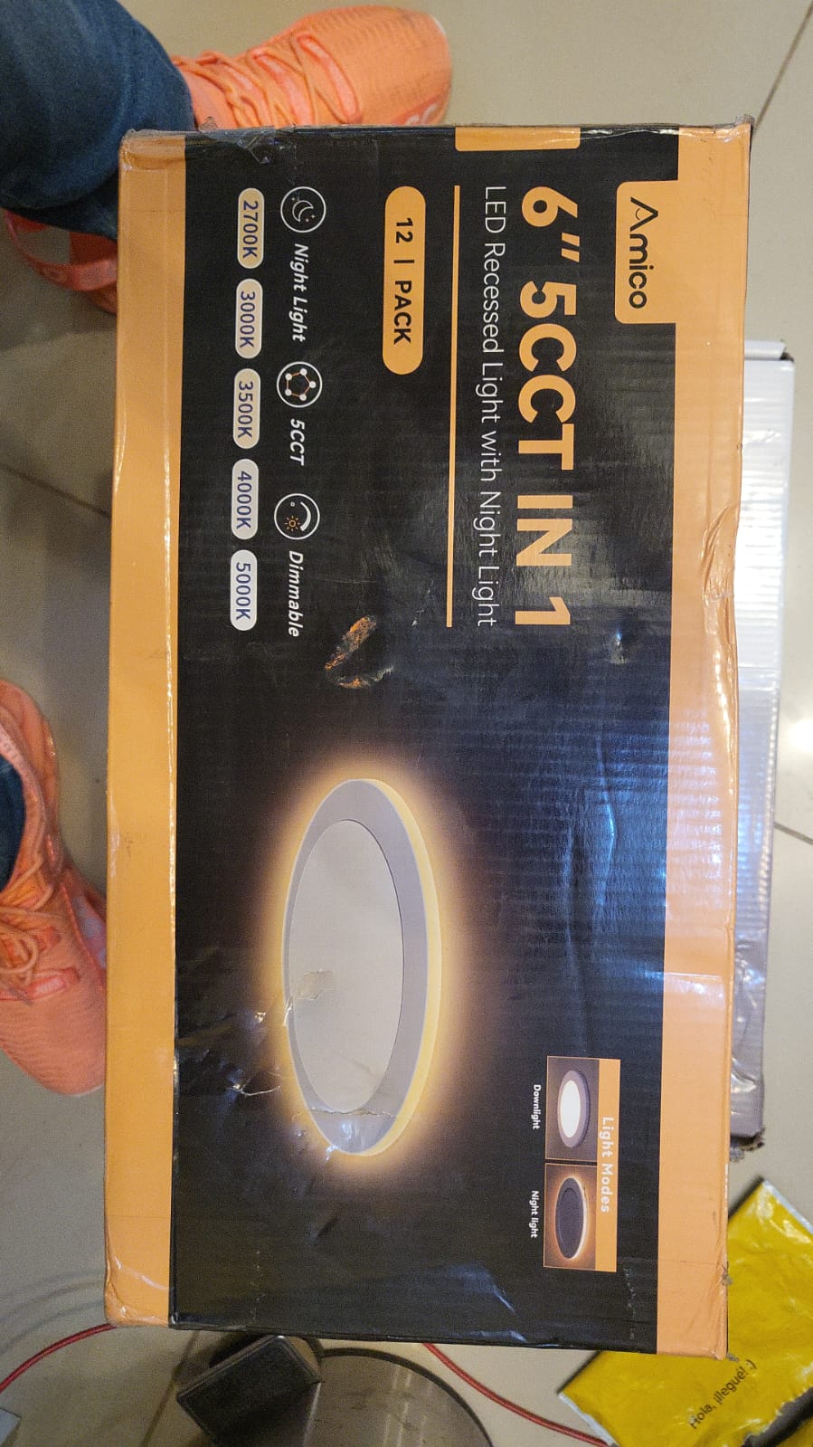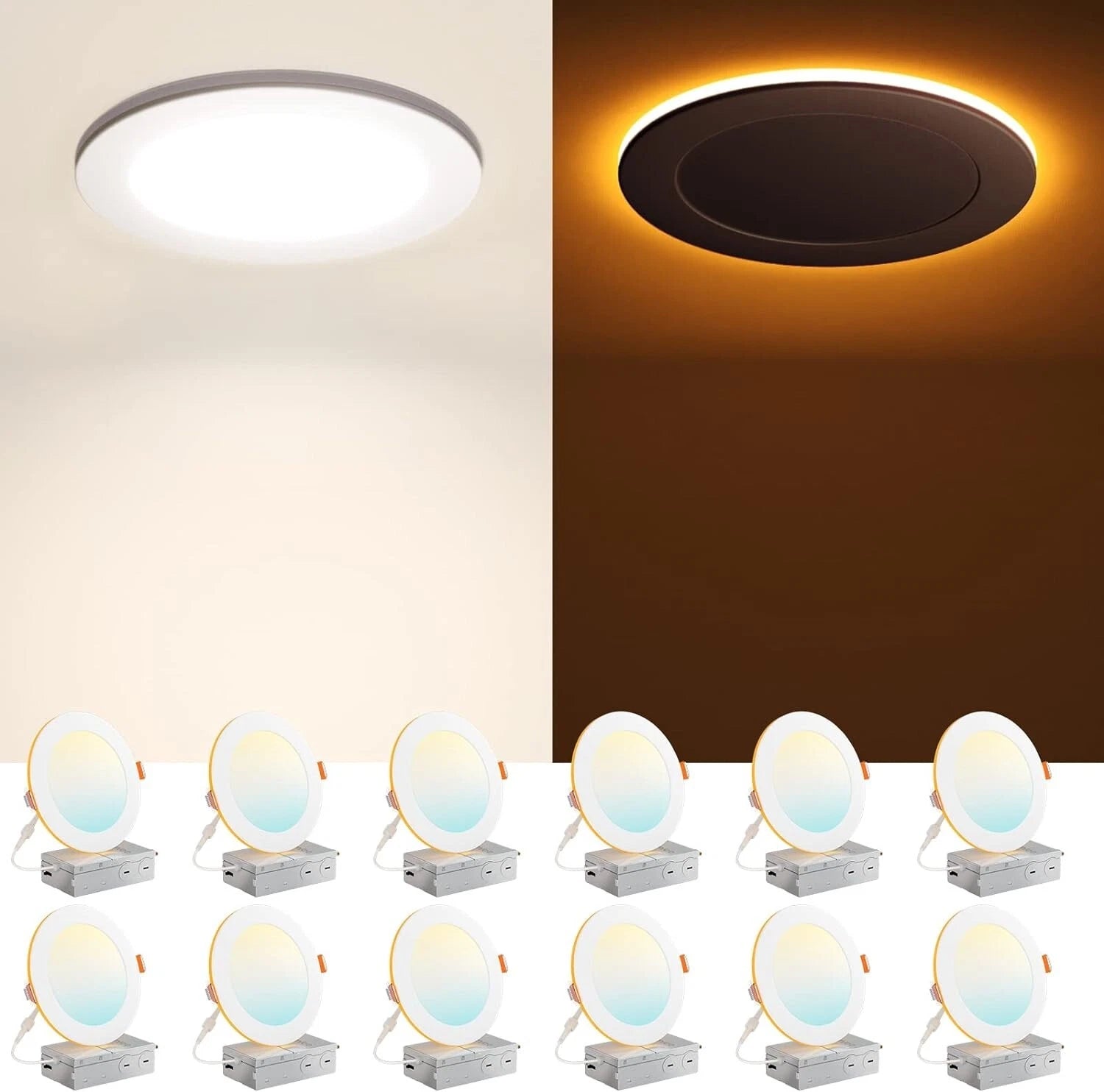 Amico - Paquete de 12 luces LED empotrables de techo de 6 pulgadas 5CCT con luz nocturna, 2700 K/3000 K/3500 K/4000 K/5000 K, iluminación ultrafina seleccionable, 12 W = 110 W, 1100 LM, Downlight.