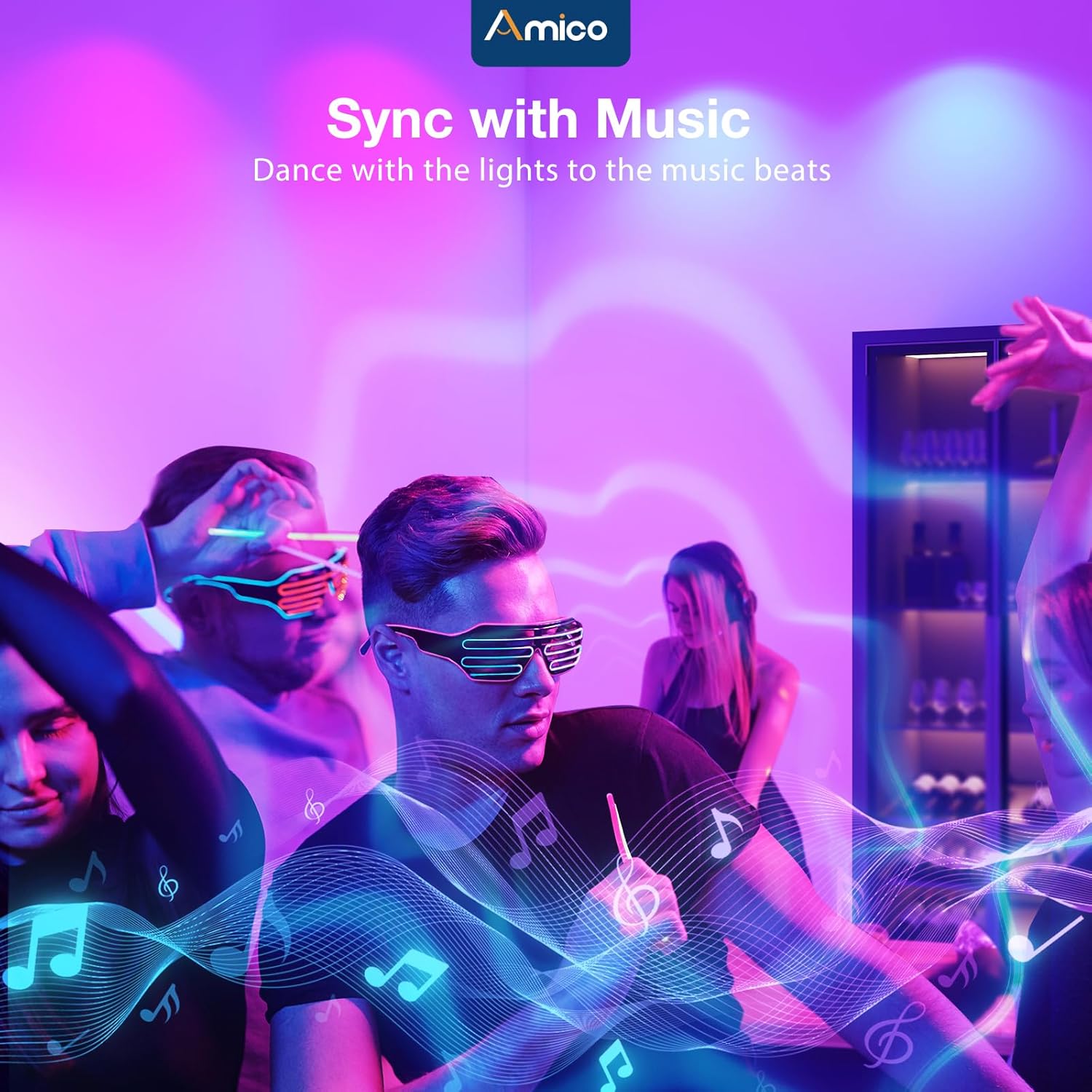 Efectos de luz dinámicos: la tecnología RGBCW puede admitir múltiples modos de escena, colorido, hermoso, deslumbrante, buenas noches, lectura, trabajo, ocio, etc. La iluminación es lo suficientemente dinámica como para adaptarse a cualquier ocasión en la que estés. También puedes bailar con las luces a los ritmos de la música utilizando la función de sincronización de música. Imprescindible para fiestas y juegos