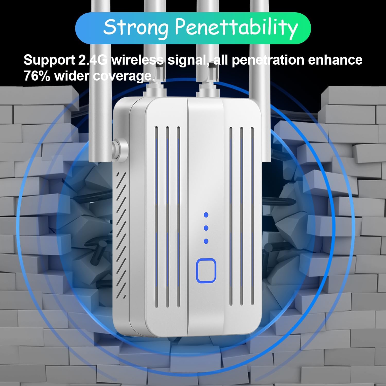 - Hasta 9995 pies cuadrados - Interior y exterior: nunca te quedes atascado detrás de paredes gruesas, electrodomésticos y pisos de cemento, ofrece un ancho de banda ultraestable para juegos en línea, videoconferencias e incluso transmisión de videos 4K HD.
