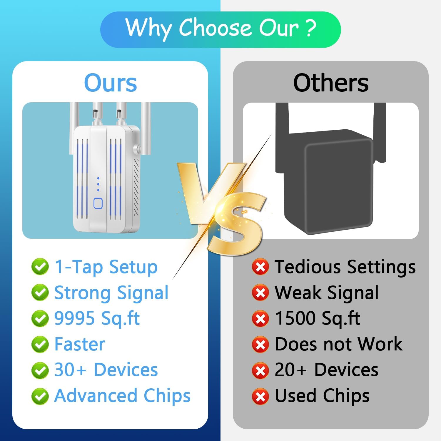 - Fácil de configurar: puede usar PC/smartphone/portátil para configurar. Conéctate a WiFi, ingresa la contraseña para completar la configuración. Proceso de instalación claro y sin desafío, hay instrucciones con la caja del paquete, extensores wifi fáciles de configurar amplificador de señal.
