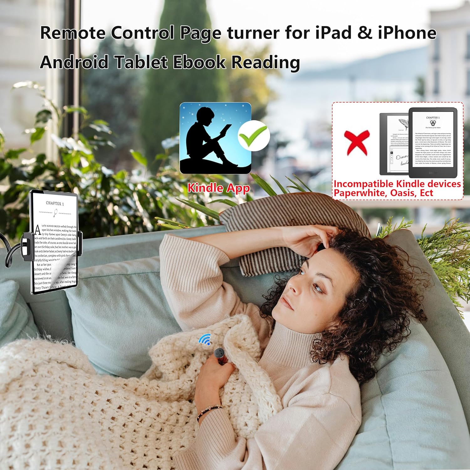 - Girador de páginas para iPad: este girador de páginas Bluetooth puede controlar remotamente el giro de páginas de aplicaciones de libros electrónicos, y puedes acostarte en la cama o en el sofá y disfrutar de la lectura. Haz un solo clic en el botón Arriba y abajo para subir y bajar la página. Haz doble clic en el botón arriba y abajo para girar la página hacia la izquierda y hacia la derecha (solo disponible para la aplicación Kindle, no para dispositivos Kindle)