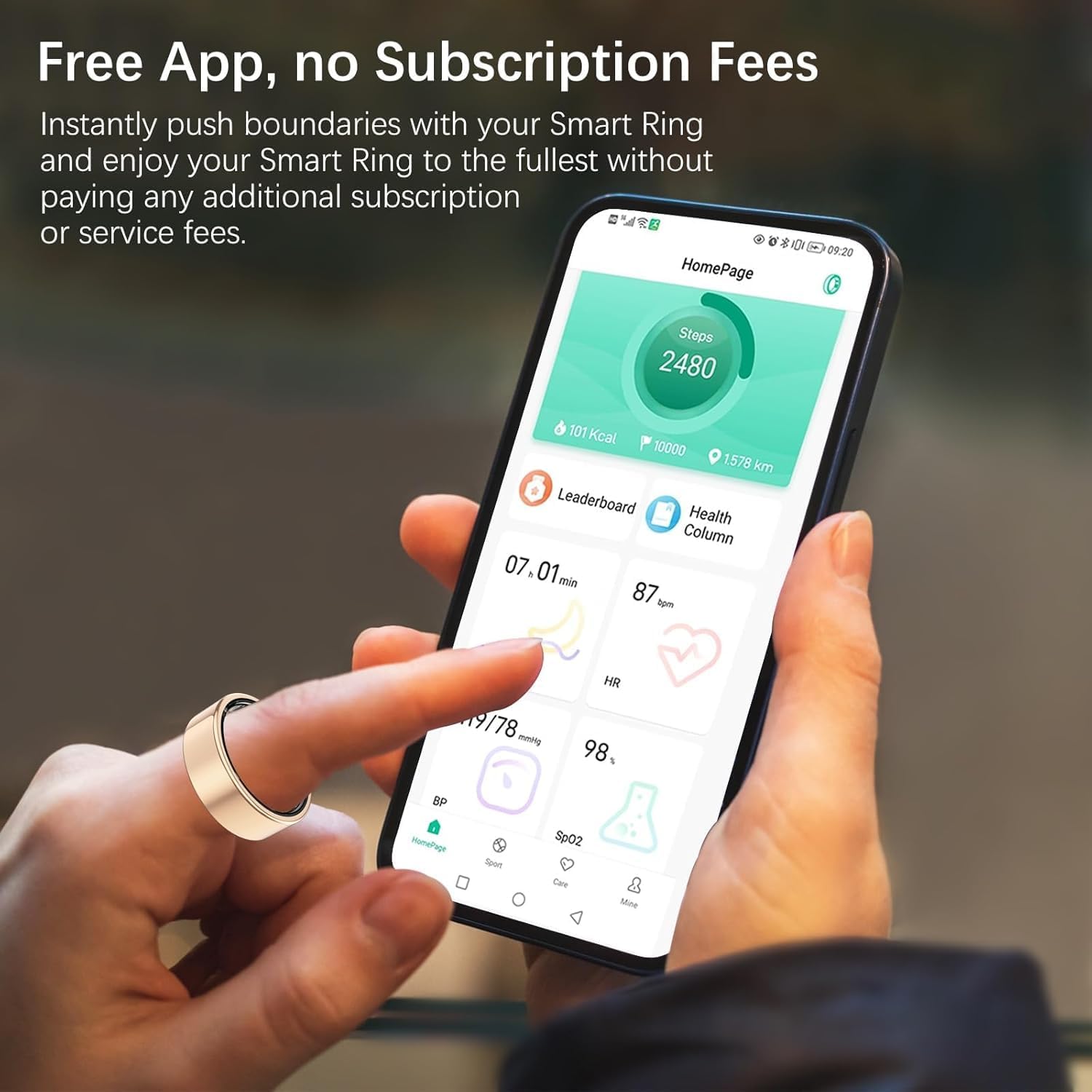 - Este anillo de ajuste rastrea automáticamente tus pasos, calorías quemadas y distancia durante todo el día. Cuenta con múltiples modos deportivos, incluyendo: correr, ciclismo, saltar, cuerda, caminar, senderismo, yoga, baile, golf y más. Cuando activas estos modos, la aplicación proporciona datos detallados de entrenamiento como: Ruta de ejercicios, Duración, Pasos, Frecuencia cardíaca, Velocidad, Calorías quemadas, Distancia. Esto te da una guía de ejercicio más efectiva para optimizar tus entrenamientos.