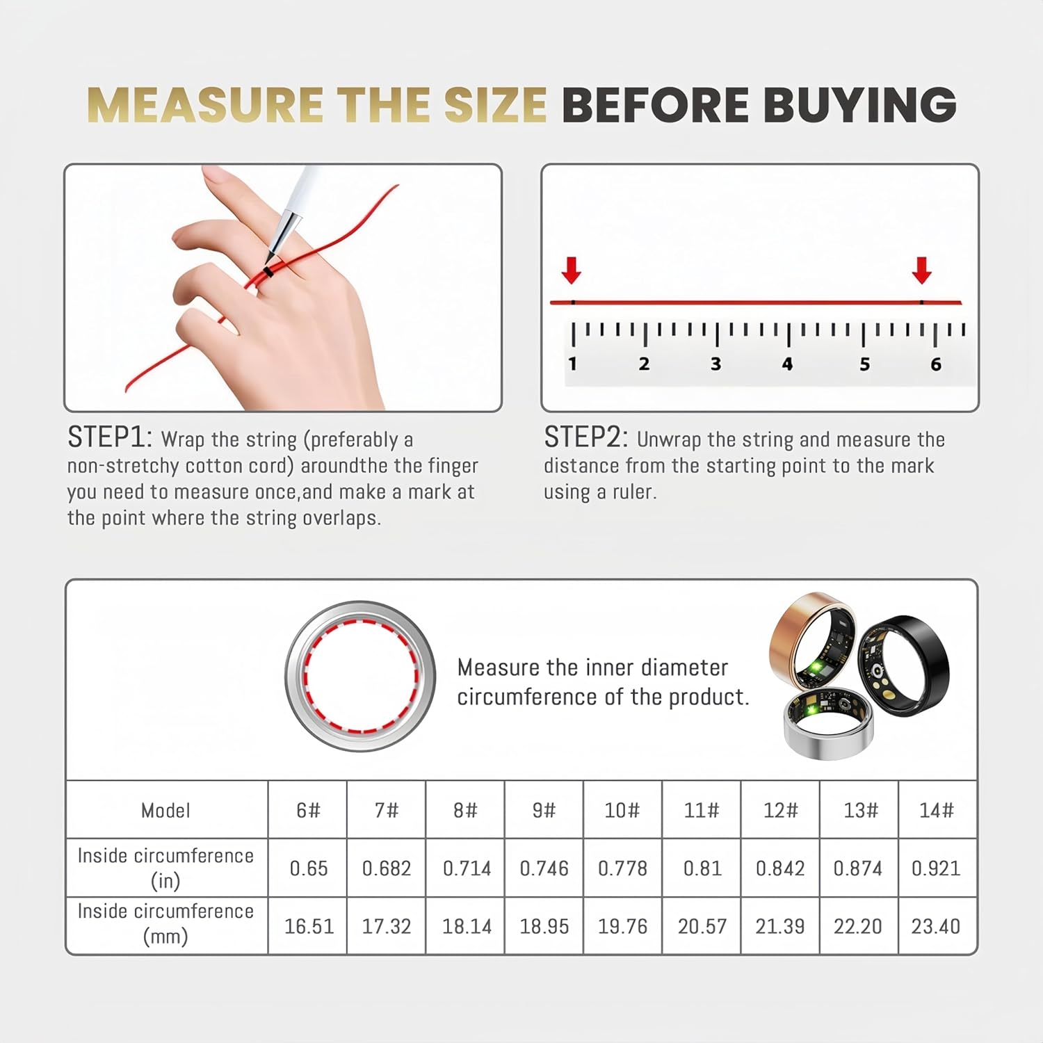 Transforma tu estilo de vida con nuestro anillo inteligente que monitoriza tu salud las 24 horas. Controla tu frecuencia cardíaca, oxígeno en sangre, pasos, distancia y calorías quemadas con precisión impresionante. ¡Captura momentos especiales con la función de fotografía remota! Simplemente agita tu dedo dos veces y toma fotos a distancia. Con resistencia IP68, este elegante accesorio tecnológico te acompaña en todas tus actividades, incluso bajo el agua. Optimiza tu bienestar sin sacrificar tu estilo.
