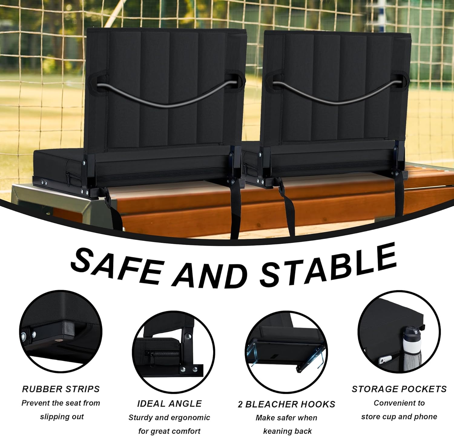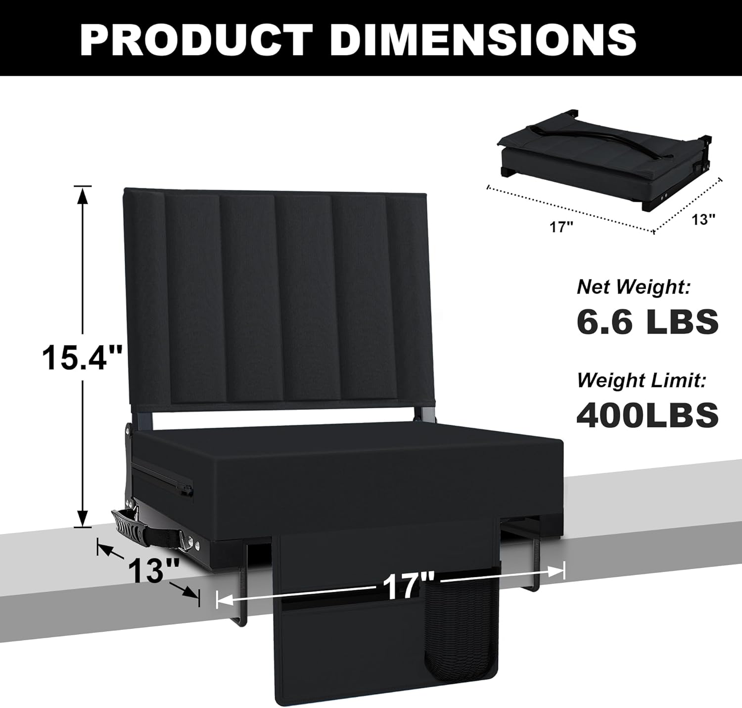 - Comodidad inigualable: el asiento del estadio ofrece un respaldo acolchado de 15.4 pulgadas de alto, lo que garantiza una comodidad excepcional. Disfruta de eventos al aire libre y juegos deportivos durante todo el día sin experimentar dolor de espalda.