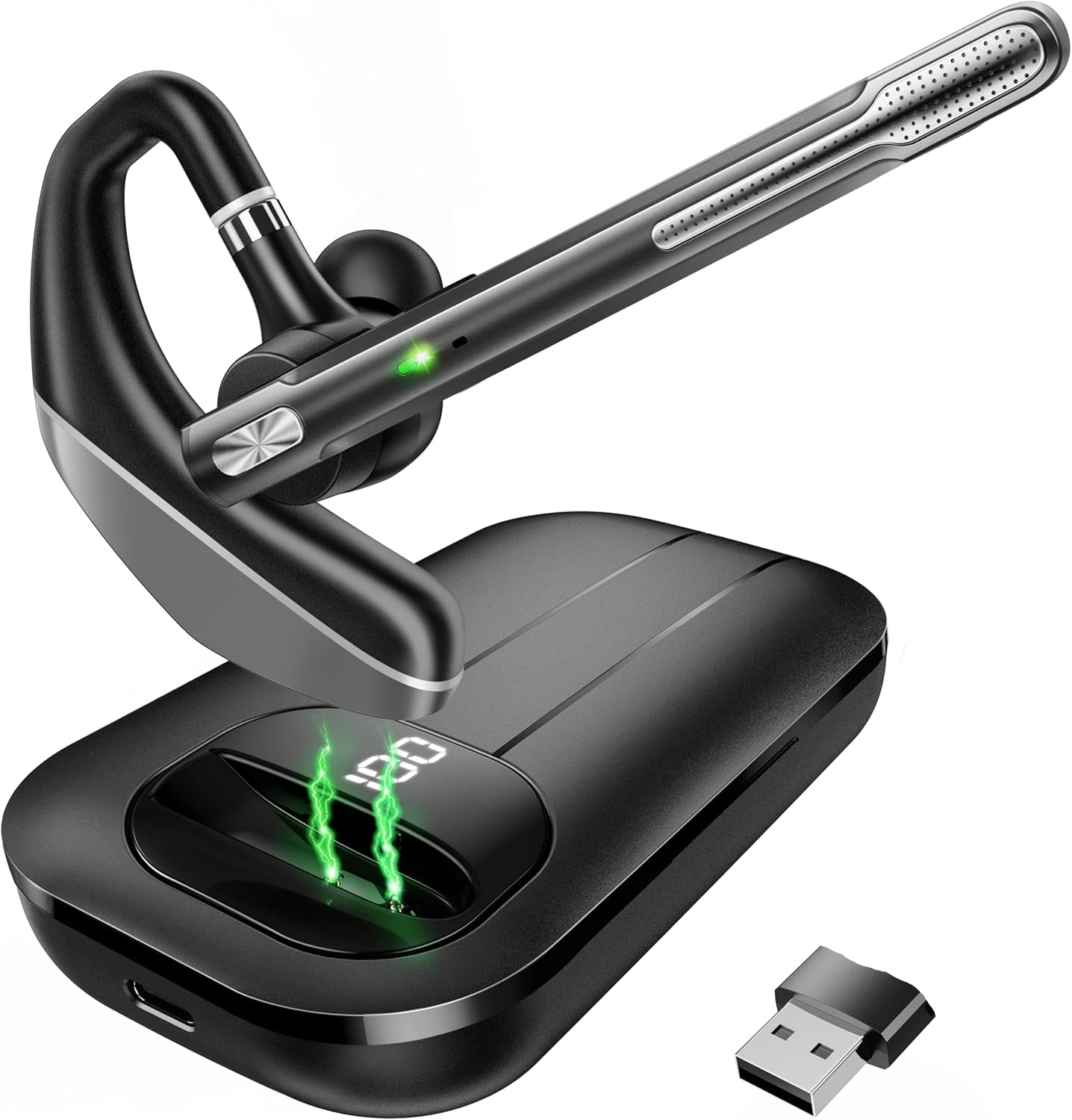 - Dongle USB y Bluetooth 5.3; los auriculares Bluetooth para computadora están equipados con el último Bluetooth 5.3. Es compatible con Bluetooth para conectar dos dispositivos a la vez, puedes responder rápidamente llamadas desde otro teléfono a través de A6L cuando hagas otra cosa, nunca te perderás una llamada telefónica. El auricular inalámbrico para computadora viene con Dongle, disponible para computadoras de computadora. Y si tu dispositivo no tiene función Bluetooth, conecta el adaptador en el puerto USB y se conectará automáticamente a A6L.