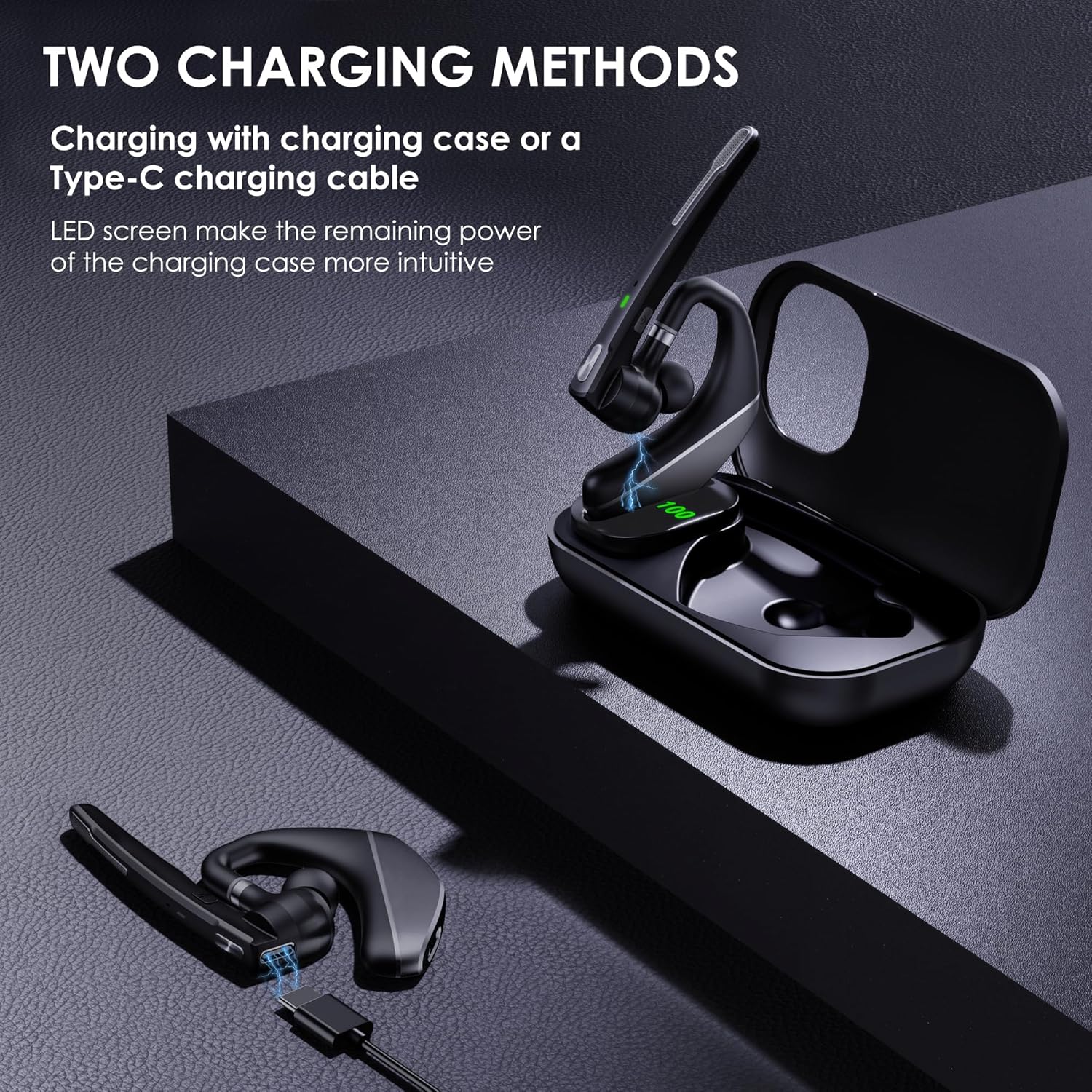 - Gran capacidad de batería y visualización LED; la capacidad de la batería de auriculares inalámbricos es de 150 mAh, una sola carga puede durar 25 horas (50% de volumen) y se puede cargar completamente en 3 horas. El auricular inalámbrico viene con una funda de carga de 1000 mAh, es conveniente para que viajes durante mucho tiempo sin buscar con frecuencia un puerto de carga. La caja de carga tiene visualización digital LED para mostrar la duración de la batería que te recuerda más intuitivamente la batería restante de la caja de carga.