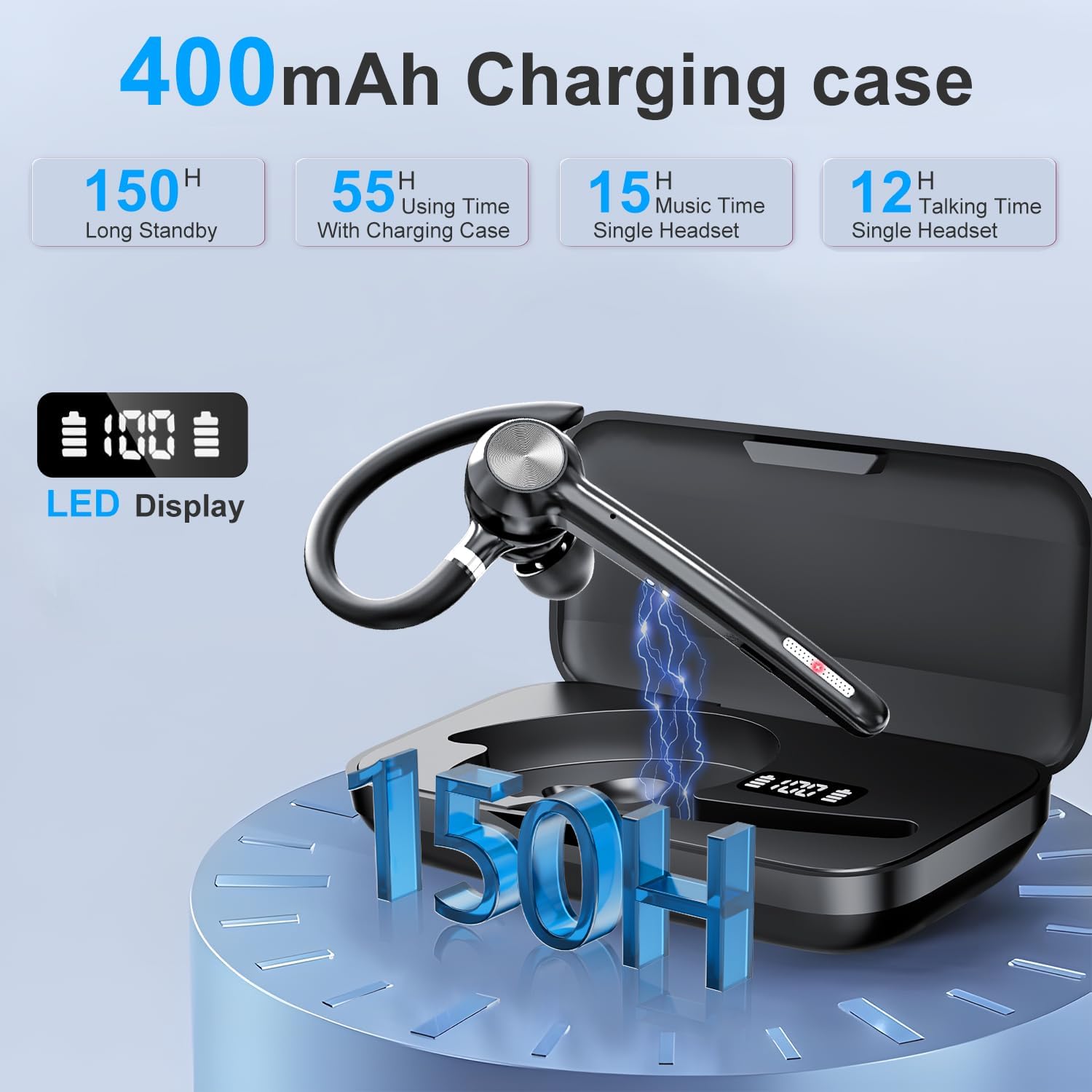 - Duración prolongada de la batería: Nuestros auriculares Bluetooth cuentan con hasta 12 horas de tiempo de reproducción con una sola carga, con un tiempo total de espera de 150 horas cuando se combina con la carcasa de batería de alta capacidad de 400 mAh. La carga rápida USB-C garantiza que el auricular alcance la carga completa en solo 1,5 horas, ofreciendo un uso ininterrumpido.
