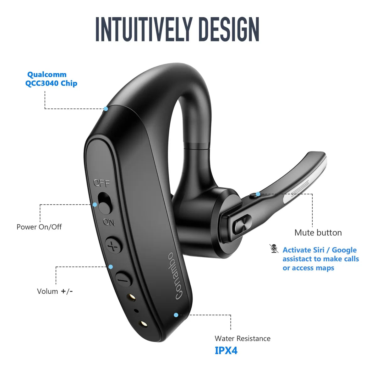 - Cancelación de ruido de micrófono dual. Los auriculares Bluetooth Conambo adoptan la tecnología de cancelación de ruido de micrófono dual. La tecnología de reducción de ruido CVC8.0 y la tecnología de cancelación de ruido ambiental trabajan juntas para bloquear de manera efectiva el 96 % del ruido a su alrededor, brindándole un entorno de comunicación de mayor calidad, puede disfrutar de llamadas de alta calidad en cualquier lugar.
