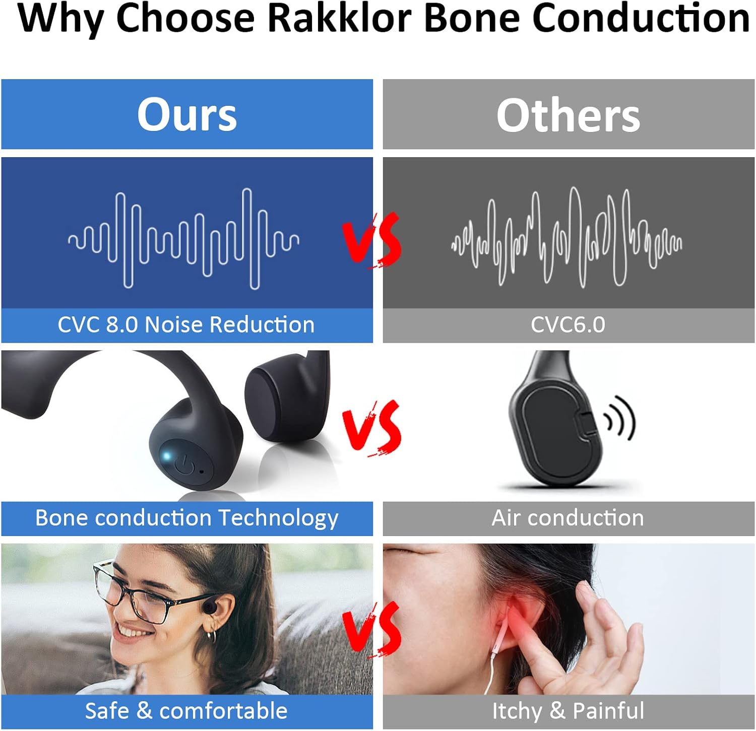 - Auriculares de conducción ósea mejorados: Los auriculares abiertos incorporan la última tecnología inalámbrica abierta. No es necesario colocarse tapones, lo que reduce el dolor y el daño auditivo. Con tecnología mejorada y una cavidad completamente cerrada, los auriculares de conducción ósea reducen la pérdida de sonido hasta en un 50%, ofreciendo una experiencia de audio inigualable.