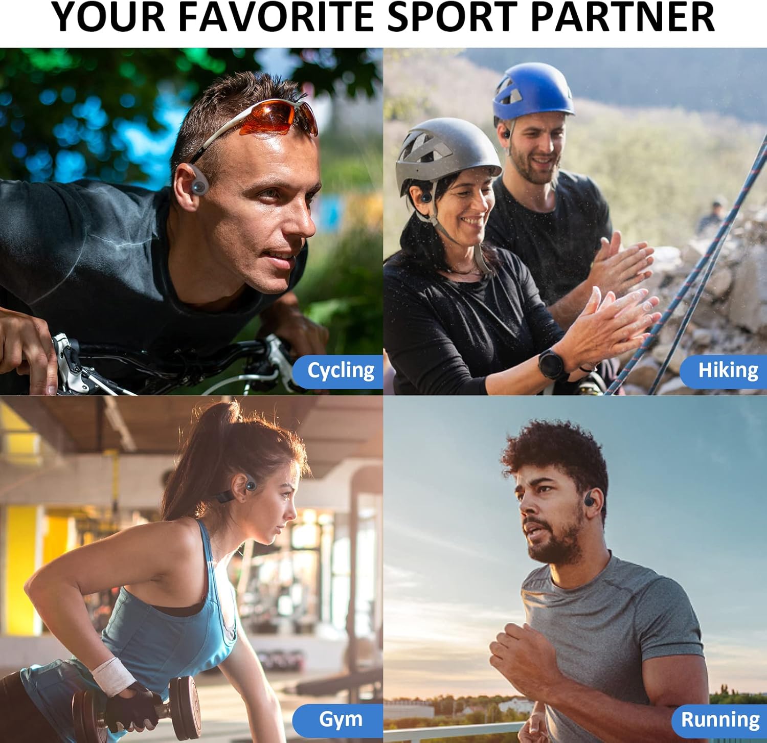 - Seguridad y comodidad: Los auriculares de conducción ósea pesan solo 32 g, están hechos de silicona suave y su esqueleto de aleación de titanio con memoria permite una rotación de 360°, se restaura al instante y es cómodo y sin carga. Clasificación de impermeabilidad IP55, sin temor al ejercicio intenso ni a las condiciones climáticas extremas, aptos para correr, andar en bicicleta, hacer senderismo, conducir, escalar, andar en patineta, saltar la cuerda, etc. *NOTA: No apto para nadar.