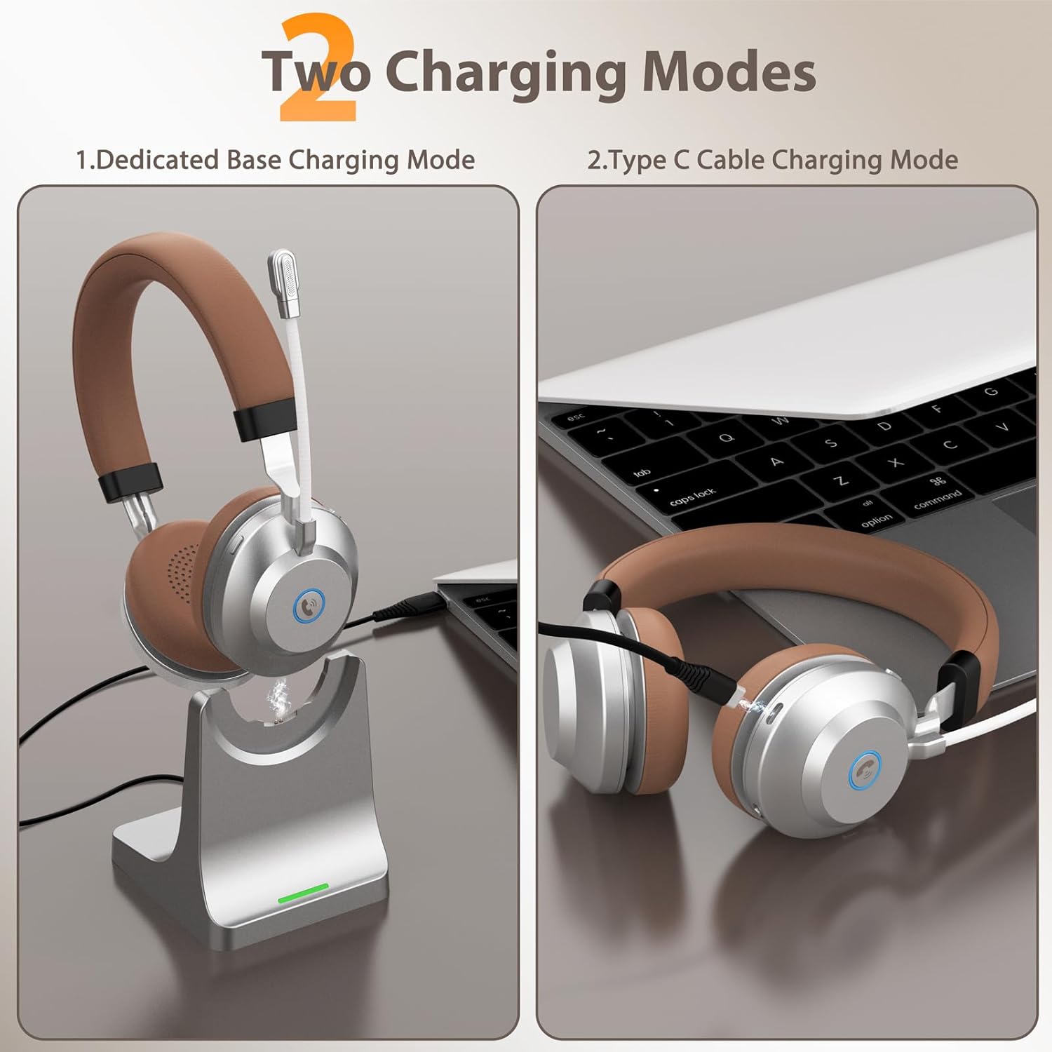 - Compañero confiable y carga sin esfuerzo: nuestros auriculares Bluetooth con micrófono vienen con una batería de 350 mAh que proporciona hasta 20 horas de uso con una sola carga. Eso es suficiente para mantenerte conectado durante días completos de turnos de trabajo de 8 horas, por lo que no tienes que preocuparte por recargar todos los días. Es perfecto para viajar, asegurando que siempre tengas energía confiable sobre la marcha. Además, los auriculares inalámbricos USB cuentan con un puerto de carga compacto tipo C, lo que te da la libertad de elegir cómo quieres cargar.