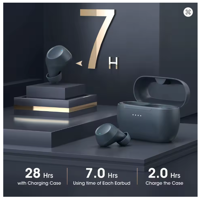 Estuche de carga inalámbrica y USB-C: Además de la carga rápida USB-C, el estuche también admite carga inalámbrica, eliminando así la molestia de buscar el cable de carga para siempre. Relájate y disfruta de una carga rápida y eficiente. Cada auricular dura 7 horas, mientras que el estuche proporciona 21 horas adicionales, lo que supone un total de 28 horas de uso durante todo el día.