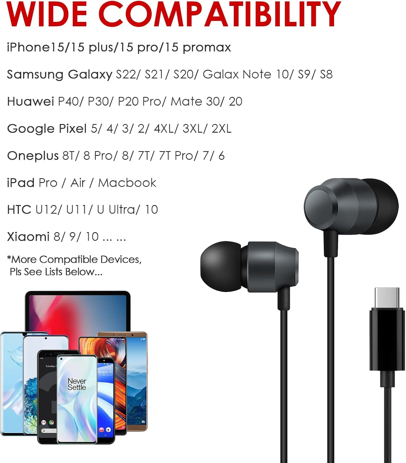 - Uso versátil: los auriculares son compatibles con los siguientes dispositivos: iPhone 15 Pro Max/iPhone 15 Pro/ iPhone 15 Plus/ iPhone 15; Samsung Galaxy S23/S22/S21/S20/A54/A53/Galaxy Note 10, One plus 7/8, Google Pixel 3/2/3XL/2XL, Xiaomi Mi 8/8 se/mix 2/mix. 22222222018/MacBook/MacBook Pro/Air, HTC U12/U11/U Ultra/10, Huawei P20 Pro /P30 Pro/Mate 10/Pro, etc.