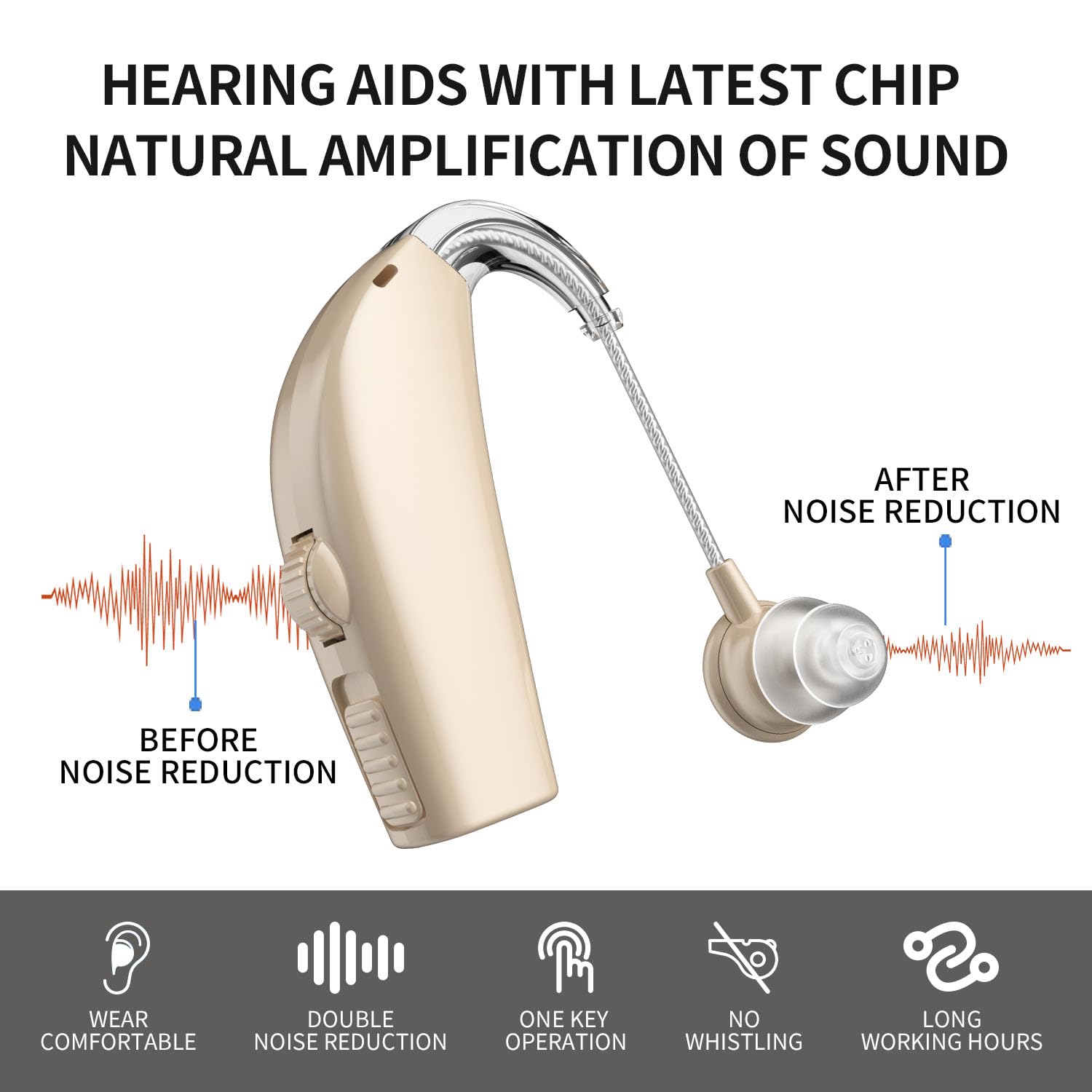 - Asistencia Auditiva Efectiva: Nuestros audífonos utilizan tecnología y chips más avanzados, y cuentan con funciones de procesamiento y amplificación de sonido más inteligentes. Nuestro audífono con cancelación de ruido garantiza una audición nítida en la vida diaria, ideal para personas mayores con pérdida auditiva de leve a severa.