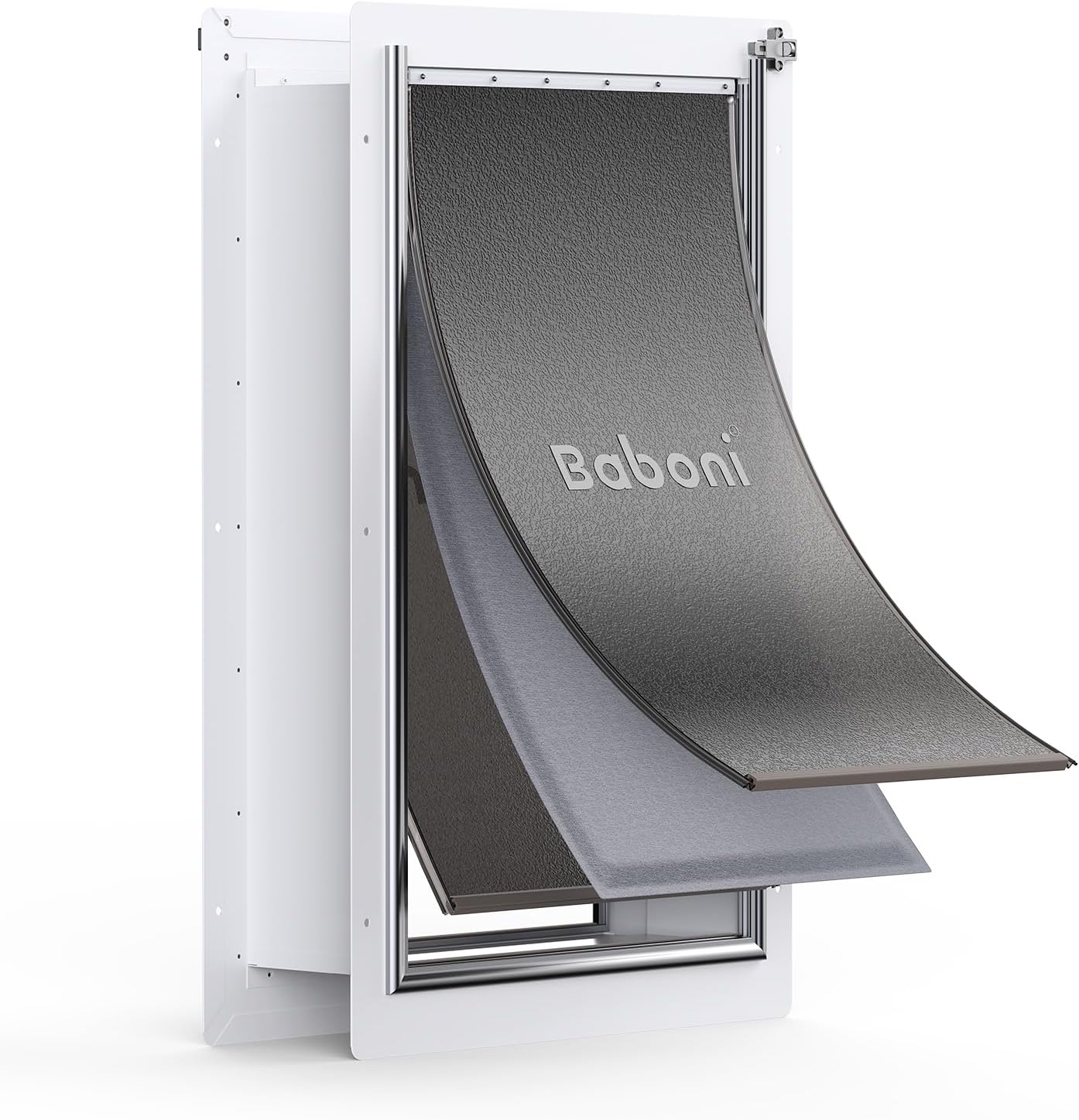 - Duradero, seguro: este marco de puerta para mascotas está hecho de proceso de soldadura láser de metal y oxidación de aleación de aluminio de acero de alta calidad para garantizar la durabilidad, seguridad y aislamiento térmico. Viene con un panel de cierre de metal.