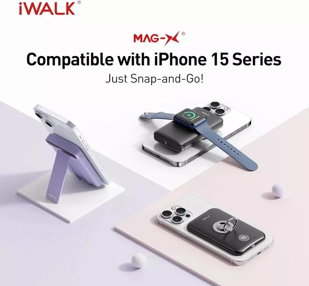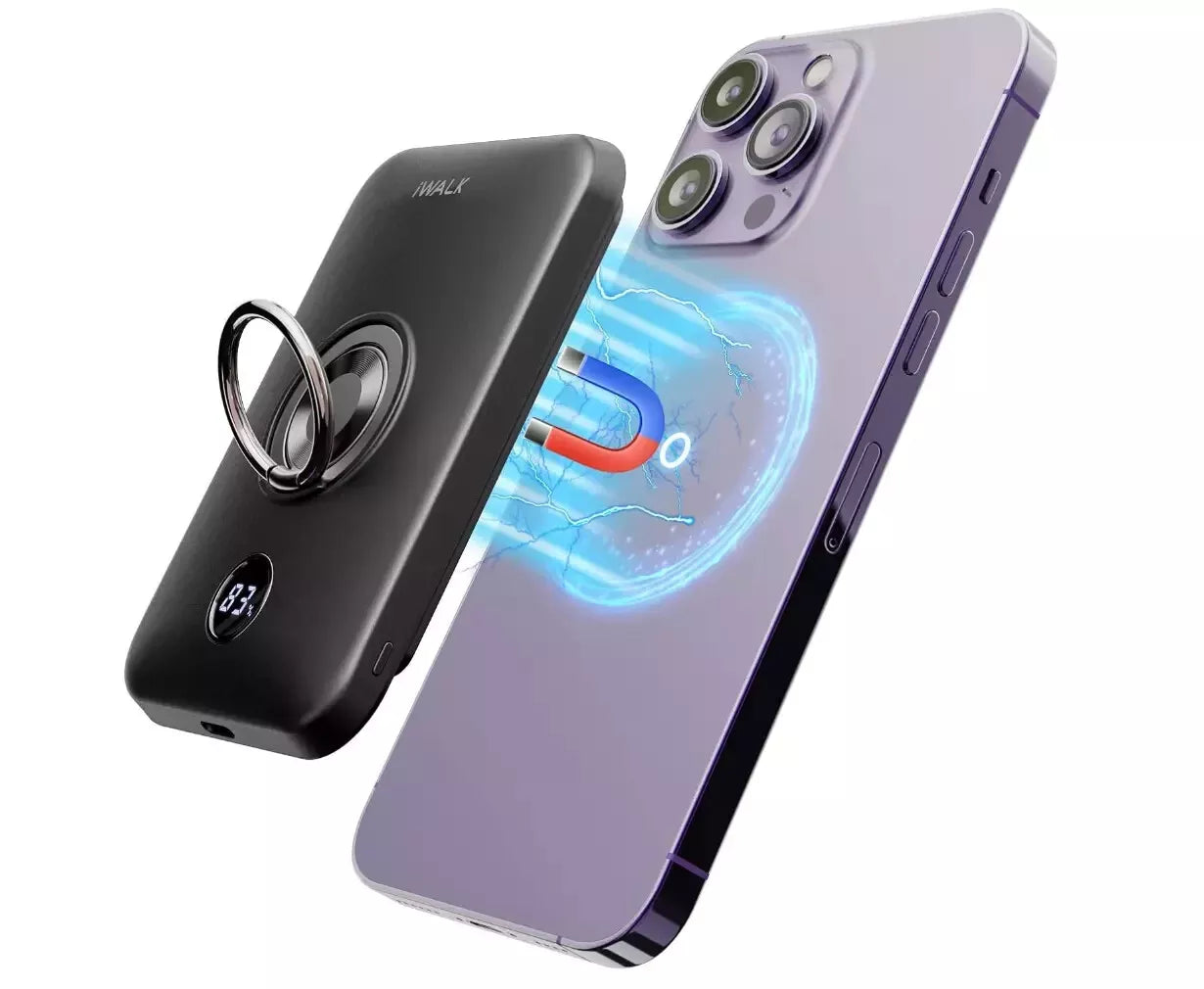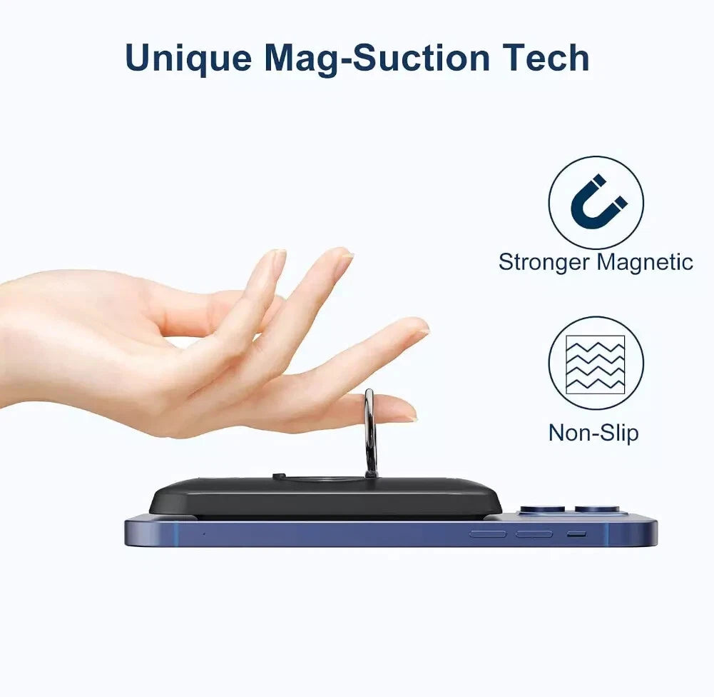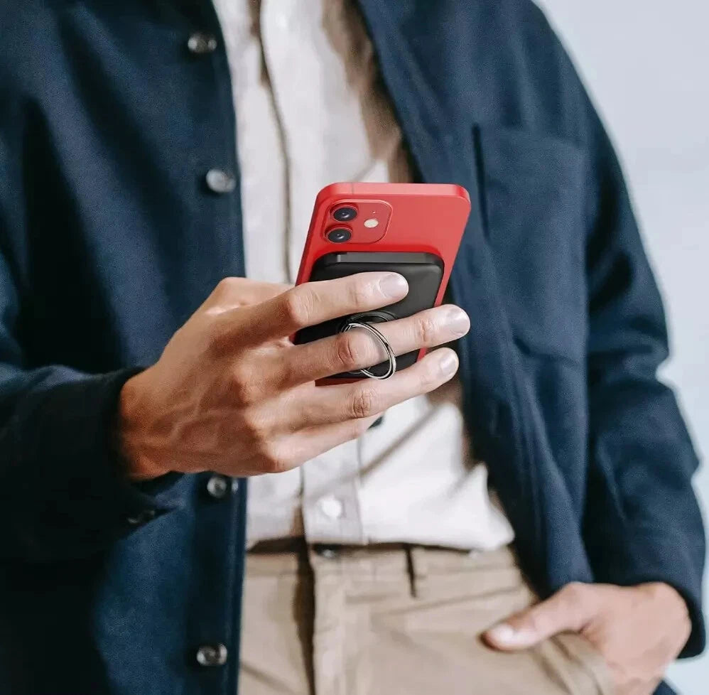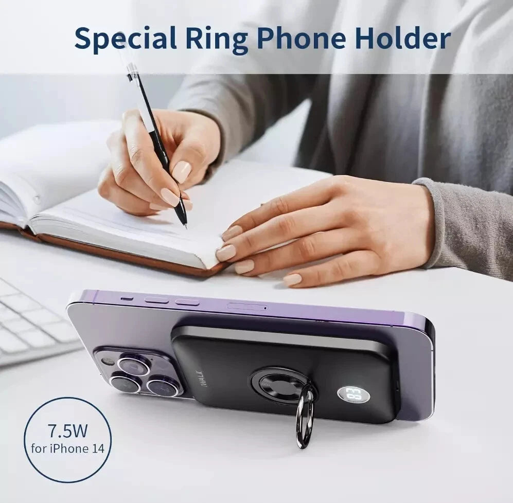 Anillo de dedo: El banco de energía inalámbrico cuenta con un soporte especial para el anillo de dedo, diseñado para sujetar tu iPhone 14/13/12 y transportarlo cómodamente mientras hablas por teléfono.