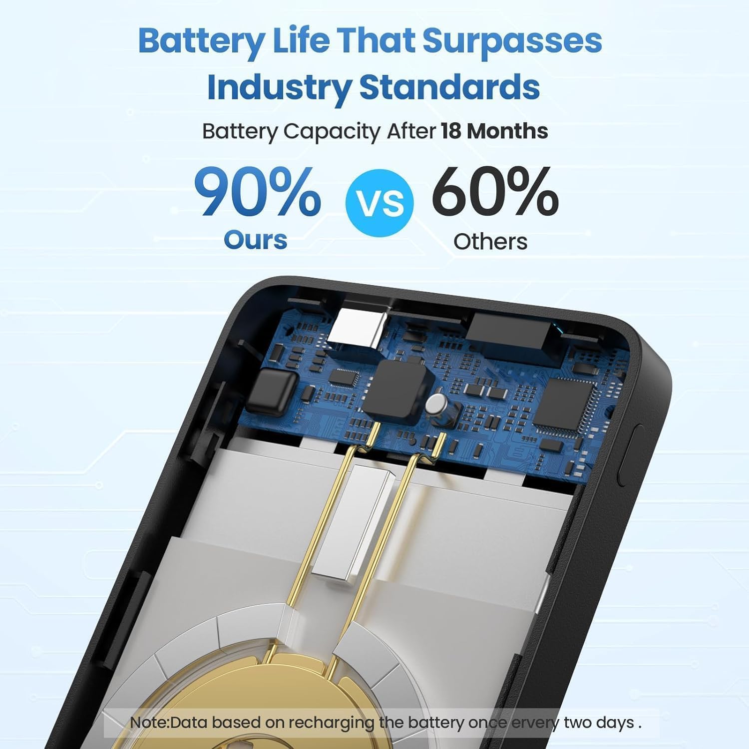 - Carga rápida para 4 dispositivos a la vez: Este cargador portátil de 4 salidas cuenta con compatibilidad con carga MagSafe y por cable, lo que permite cargar rápidamente 4 dispositivos simultáneamente. Admite carga magnética para iPhone (máx. 7,5 W), carga inalámbrica rápida para iWatch (máx. 3 W), salida USB-A QC4.0 (máx. 18 W), salida USB-C PD (máx. 22,5 W) y entrada USB-C (máx. 18 W).