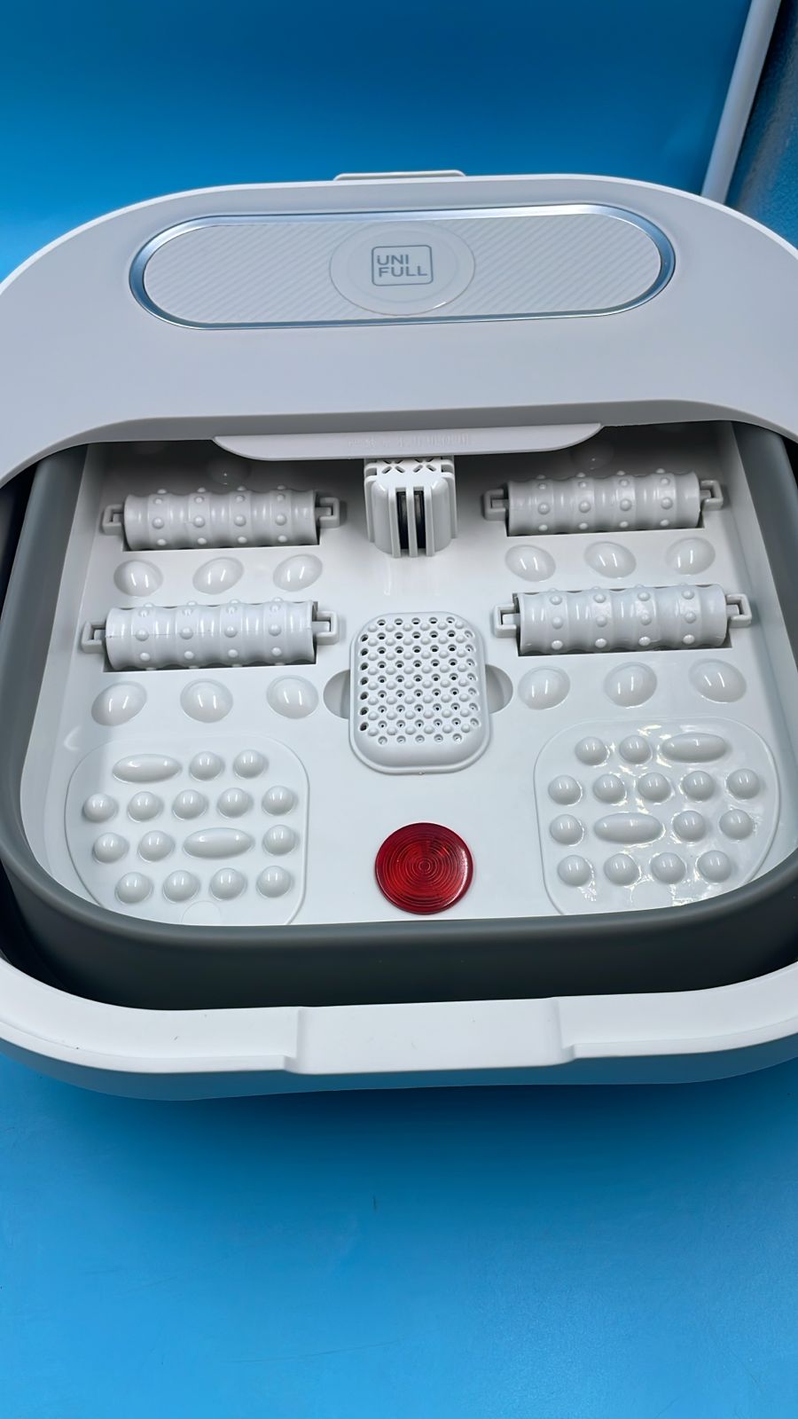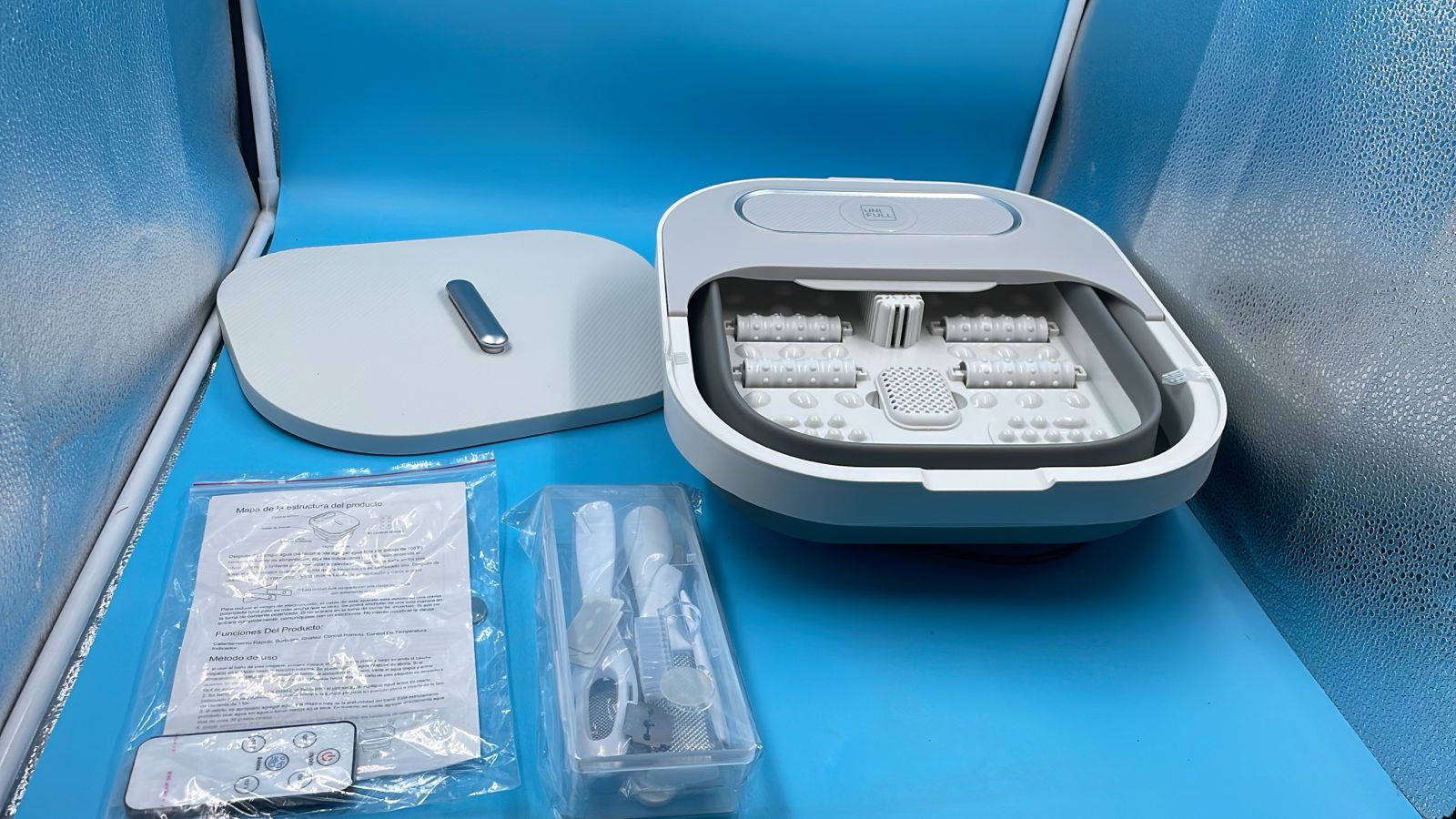 Bañera plegable para pies con rodillos de calor y masaje.