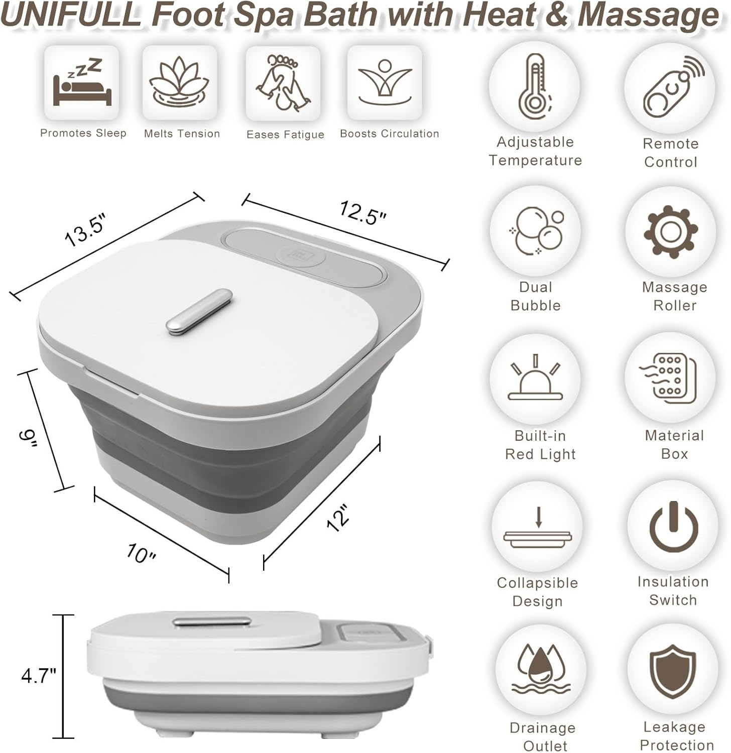 - Spa plegable para pies. El diseño de almacenamiento de baño de spa para pies que ahorra espacio, está hecho de goma PP y TPE, más duradero, larga vida útil de hasta 18000 veces para plegarse. También tiene el drenaje de agua.