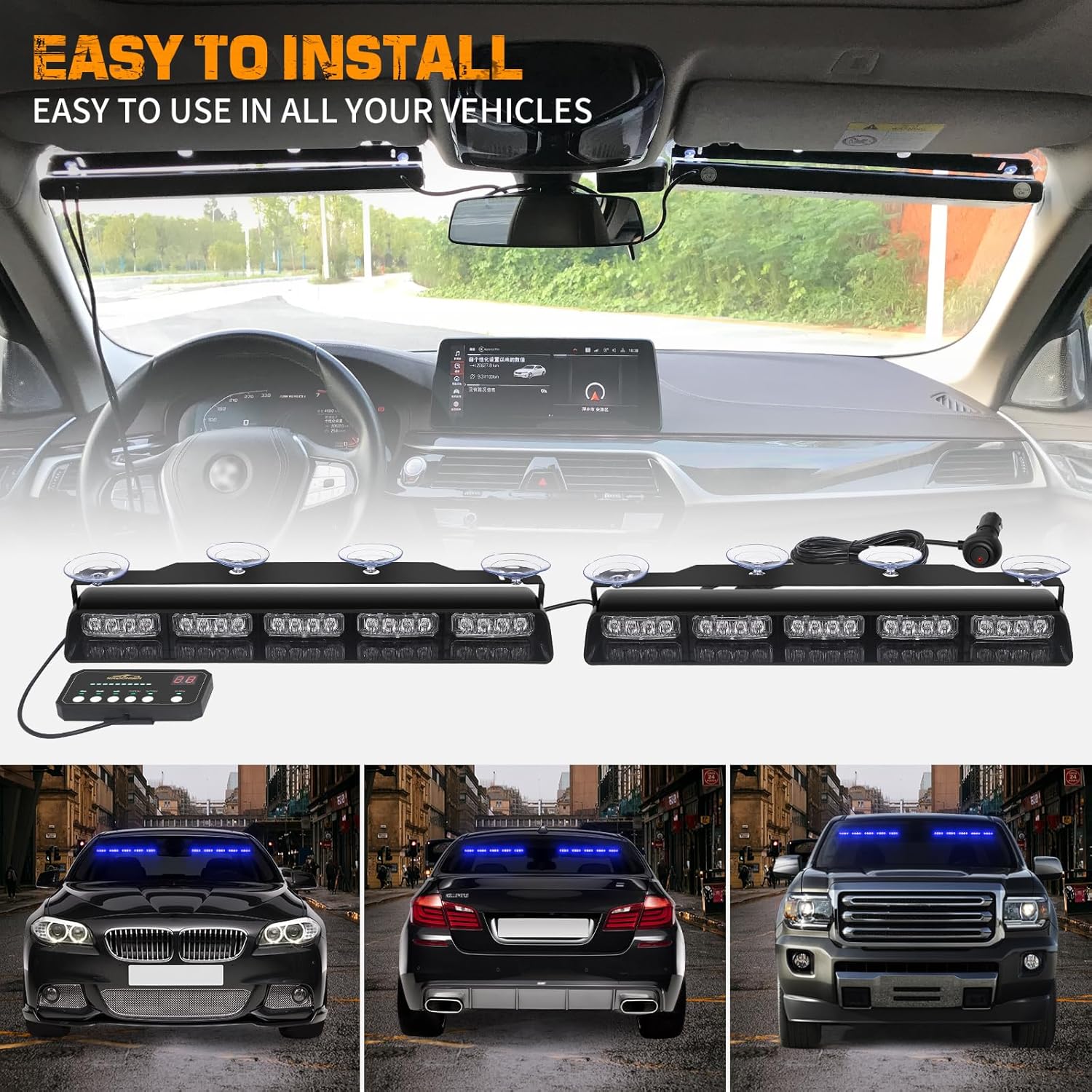 - Fácil de instalar: instalación de ventosa, fácil de colocar en la ventana, sin necesidad de taladrar agujeros. Se puede mover fácilmente de un vehículo a otro. Estas luces estroboscópicas para tablero se pueden instalar en el parabrisas delantero o en la ventana trasera.