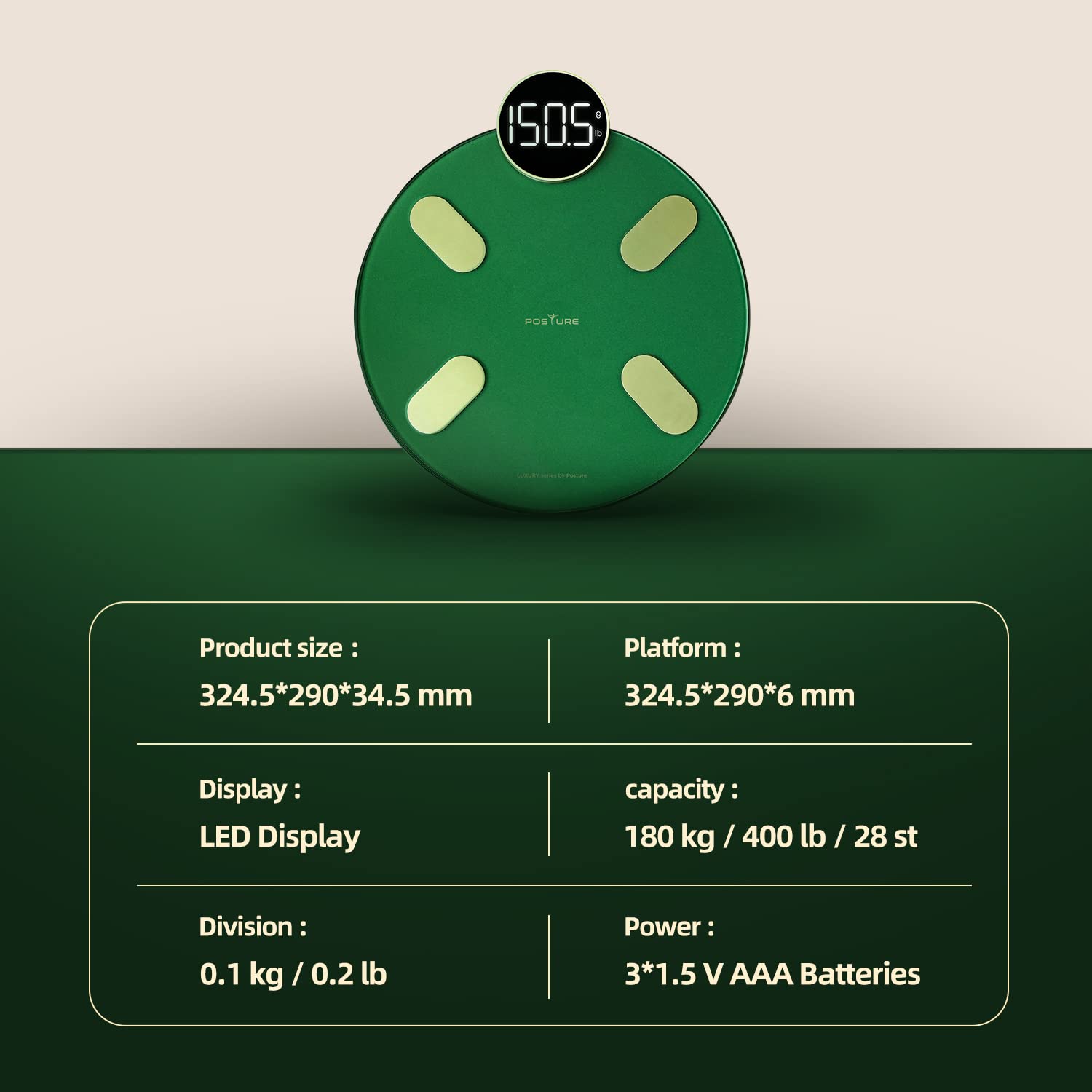 Alta calidad y precisión: la báscula de baño Posture cuenta con 4 electrodos y 4 sensores de alta precisión. Empleando tecnología avanzada BIA, esta báscula de pesaje puede medir sus métricas con mayor precisión. Tiene una división de 0.2lb/100g y puede alcanzar una capacidad máxima de 400lb/180kg