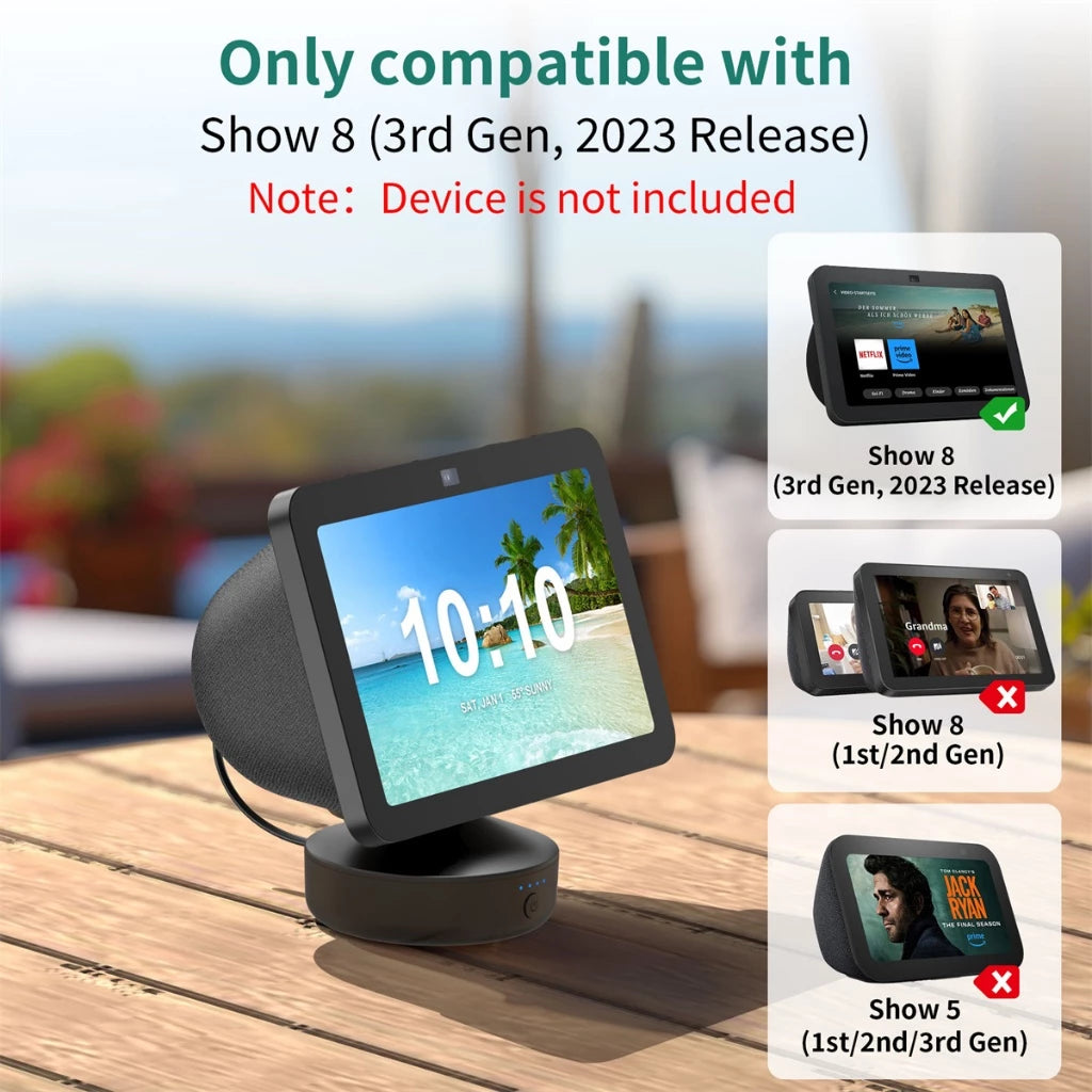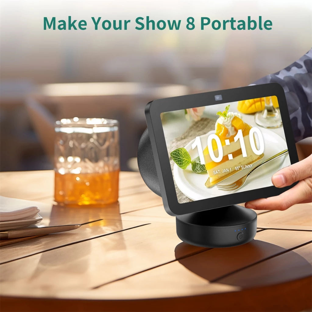 2.El tamaño de la Base de la batería se adapta perfectamente al Echo Show 8 (3ra generación), el altavoz se fija con succión magnética y las almohadillas inferiores para los pies están diseñadas para ser a prueba de golpes.