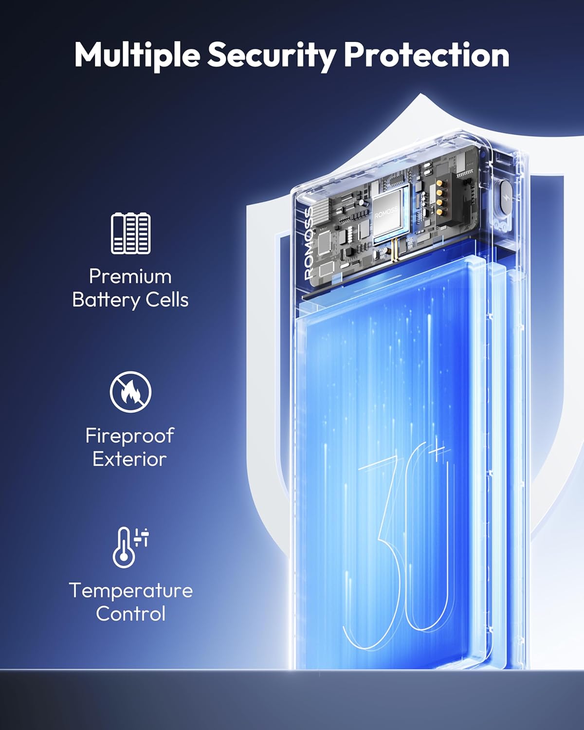 La batería powerbank portátil Romozz de 30000mAh ofrece una carga potente y confiable para tus dispositivos en cualquier lugar. Su gran capacidad garantiza múltiples recargas, ideal para viajes o días largos fuera de casa. Compacta y fácil de transportar, es la solución perfecta para mantener tus gadgets siempre activos y listos para usar. No te quedes sin energía, lleva contigo la Romozz y disfruta de libertad total.
