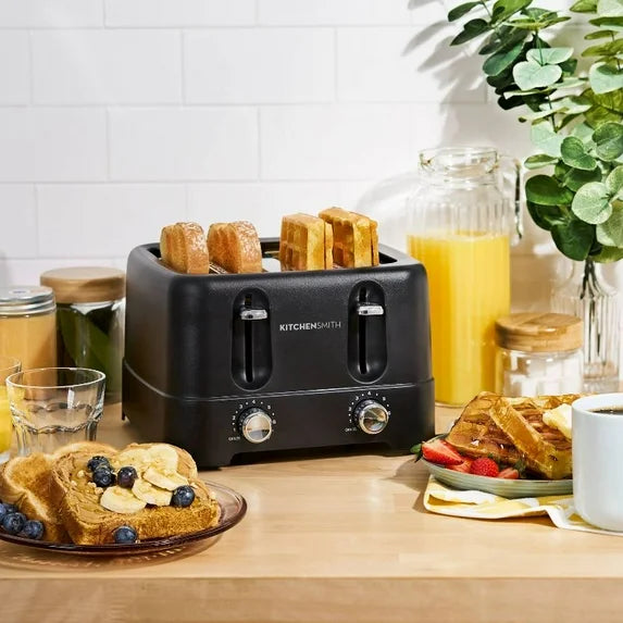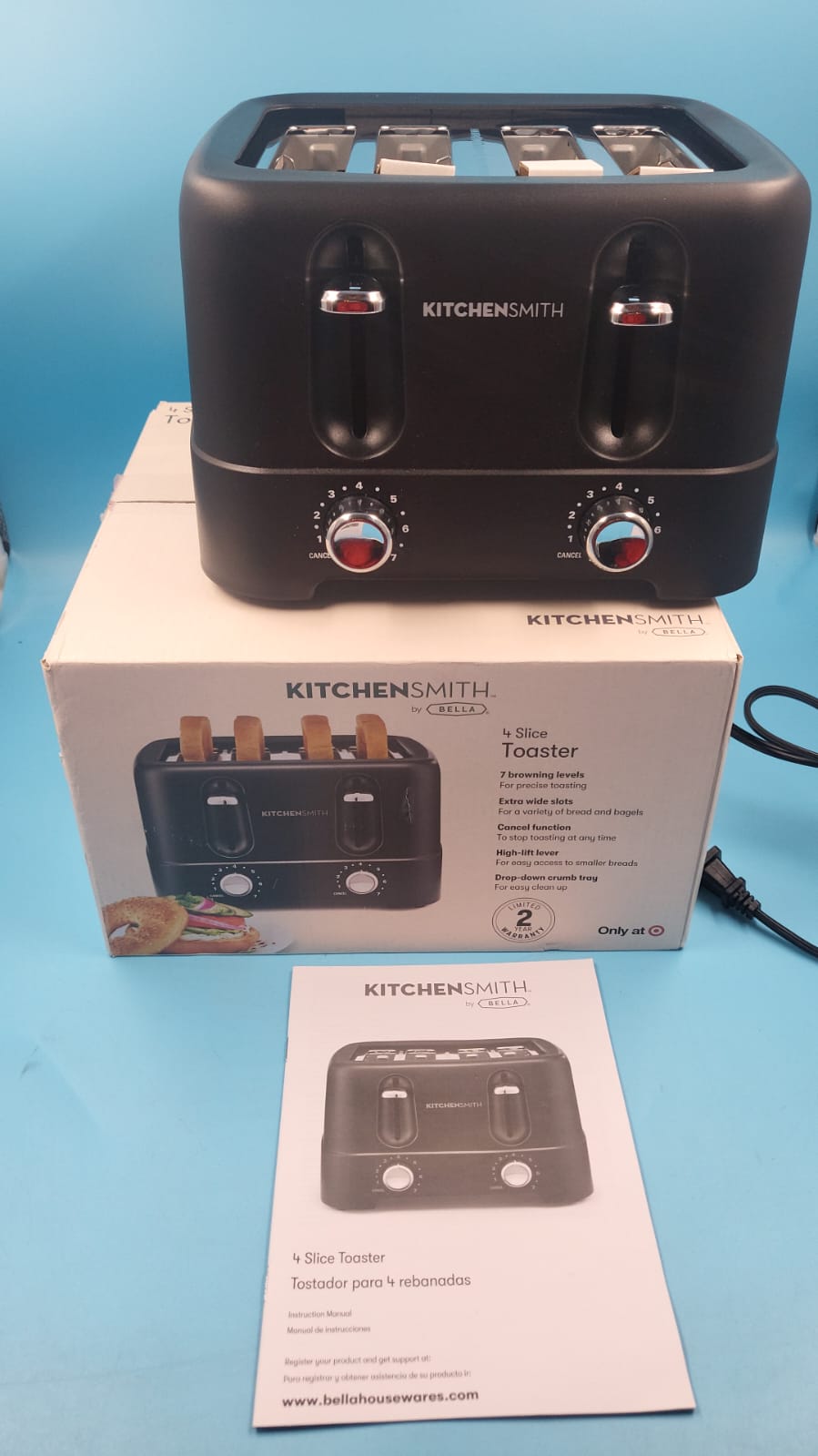 Tostadora de 4 Rebanadas: Gris, 1480W, Plástico, Limpieza de Manchas, 11,02" de Ancho, 1. KITCHEN SMITH BY Bella