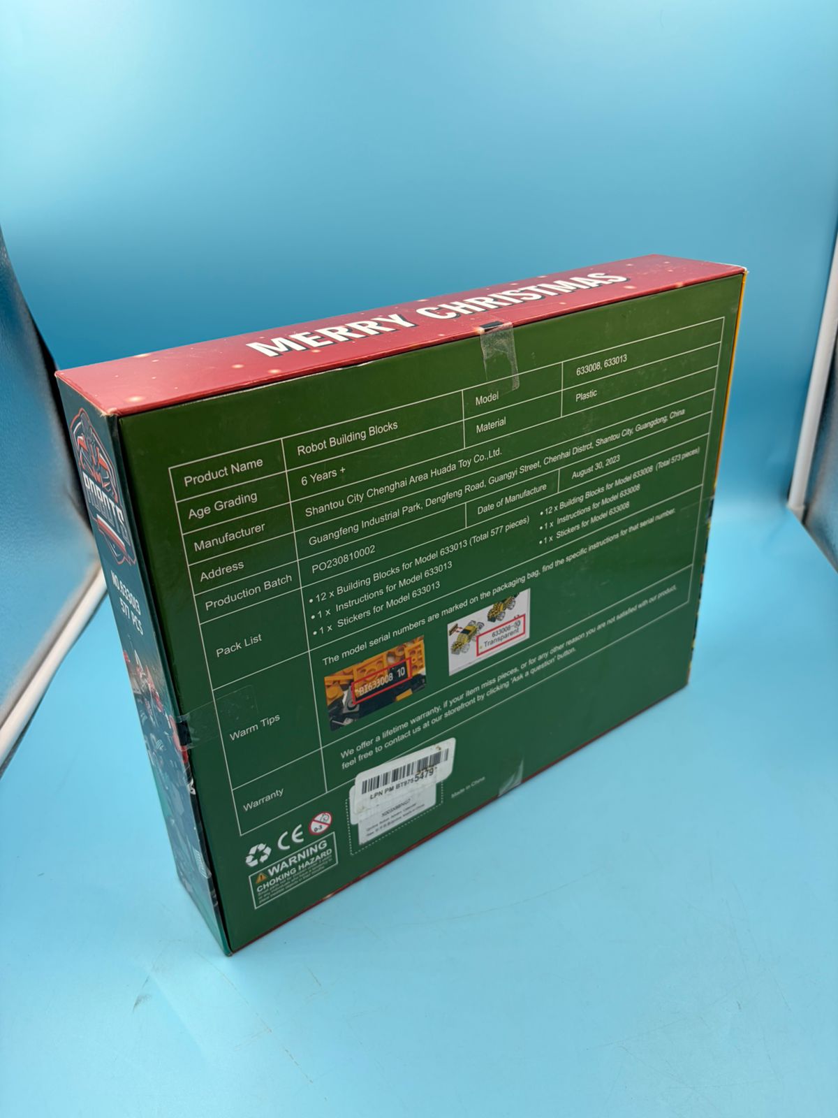 Construcción a gran escala: El mayor atractivo es la posibilidad de combinar todas las piezas para formar 2 robots gigantes de combate (modelos 633008 y 633013), diseñados con colores vibrantes en amarillo, negro y detalles tecnológicos.