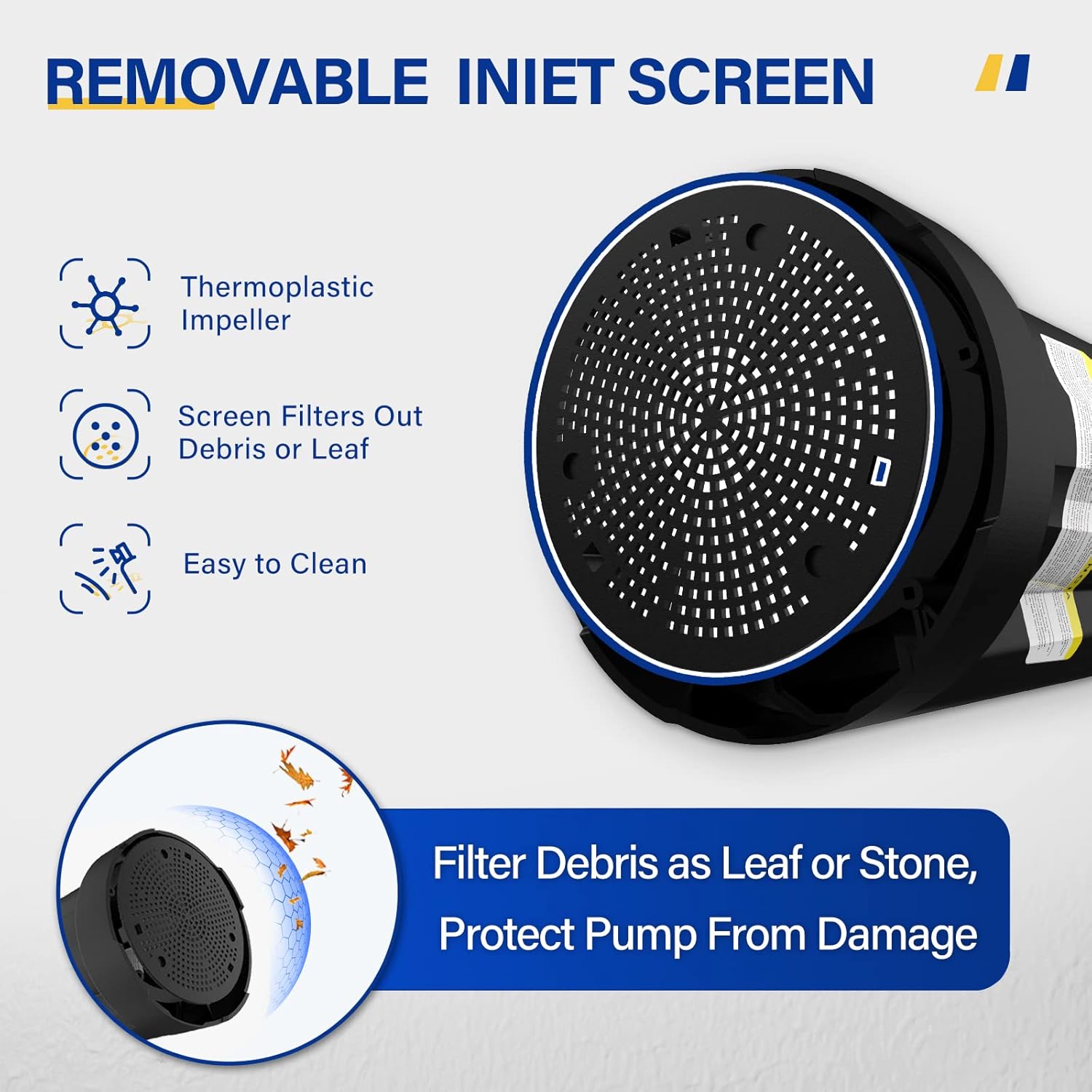 - Visualización y adaptador desmontables: bomba sumergible con diseño de visualización inferior desmontable, filtra los residuos, protege la bomba de agua de daños y elimina el agua hasta 1/4 pulgadas de superficie. Puedes conectar una manguera de jardín de 5/8 pulgadas de diámetro o más grande dependiendo de tus necesidades.