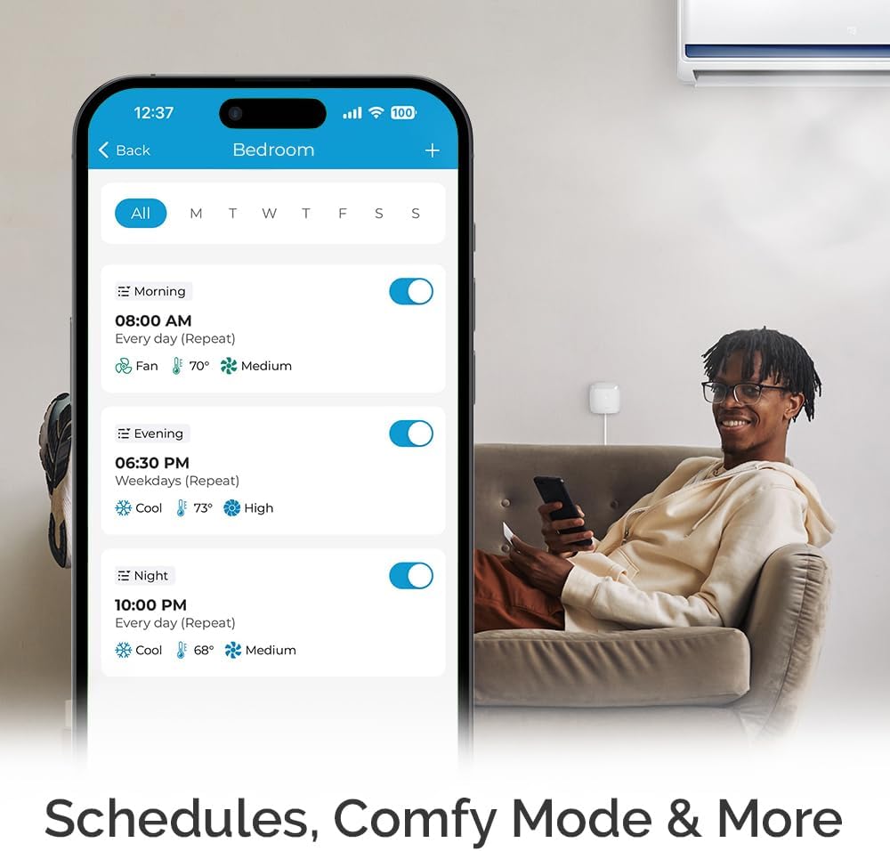 - Tamaño pequeño, grandes beneficios: elegante y pequeño driver de CA inteligente que se puede mezclar fácilmente en cualquier habitación. Las características poderosas incluyen programación semanal, modo cómodo, geofencing, historial de uso, estado del filtro de aire y más trabajo como magia para un entorno ideal para el hogar.
