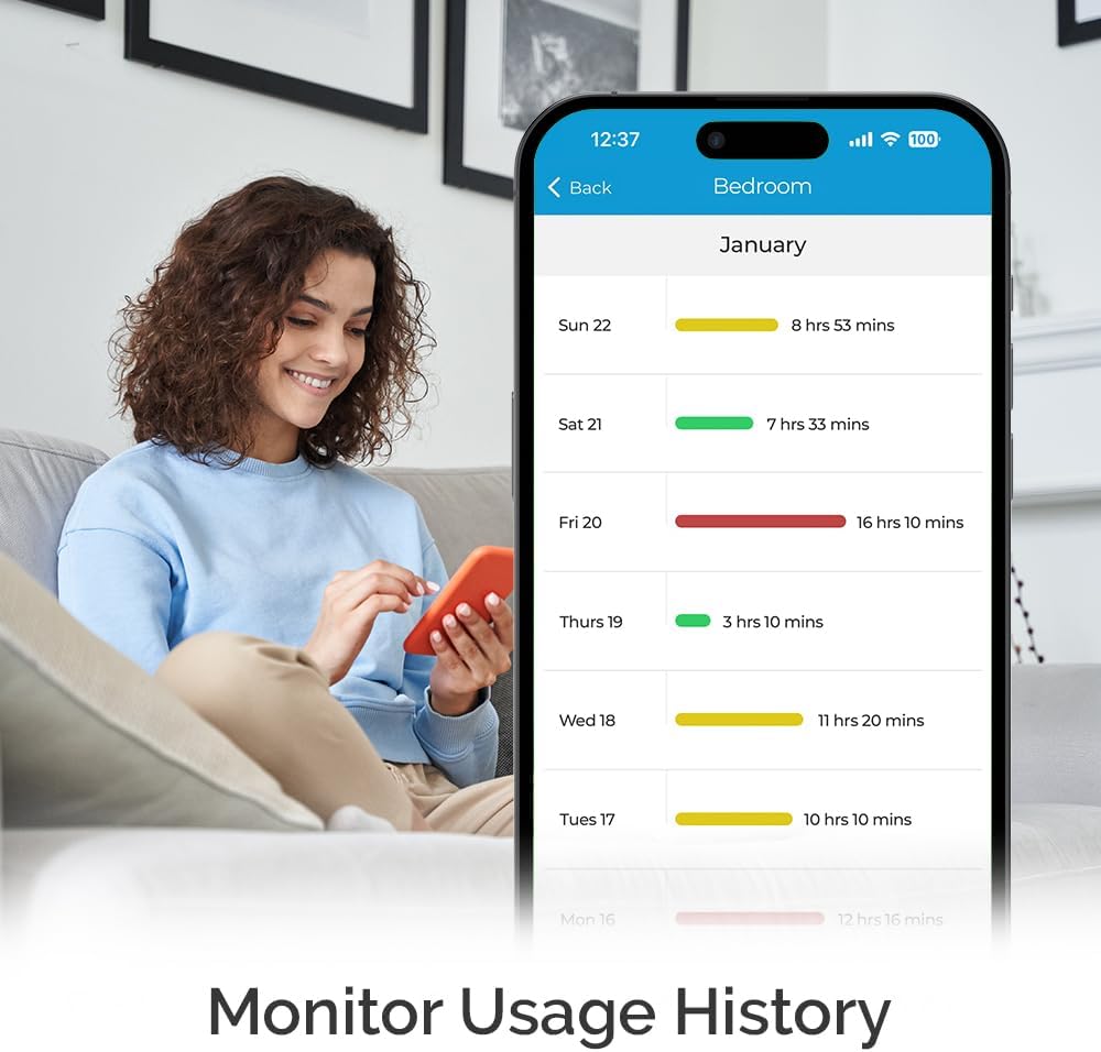 - Temperatura perfecta siempre: los sensores de temperatura y humedad incorporados, en combinación con funciones inteligentes, garantizan una temperatura ambiente perfecta. Siempre puedes configurar disparadores inteligentes para un clima doméstico automatizado.