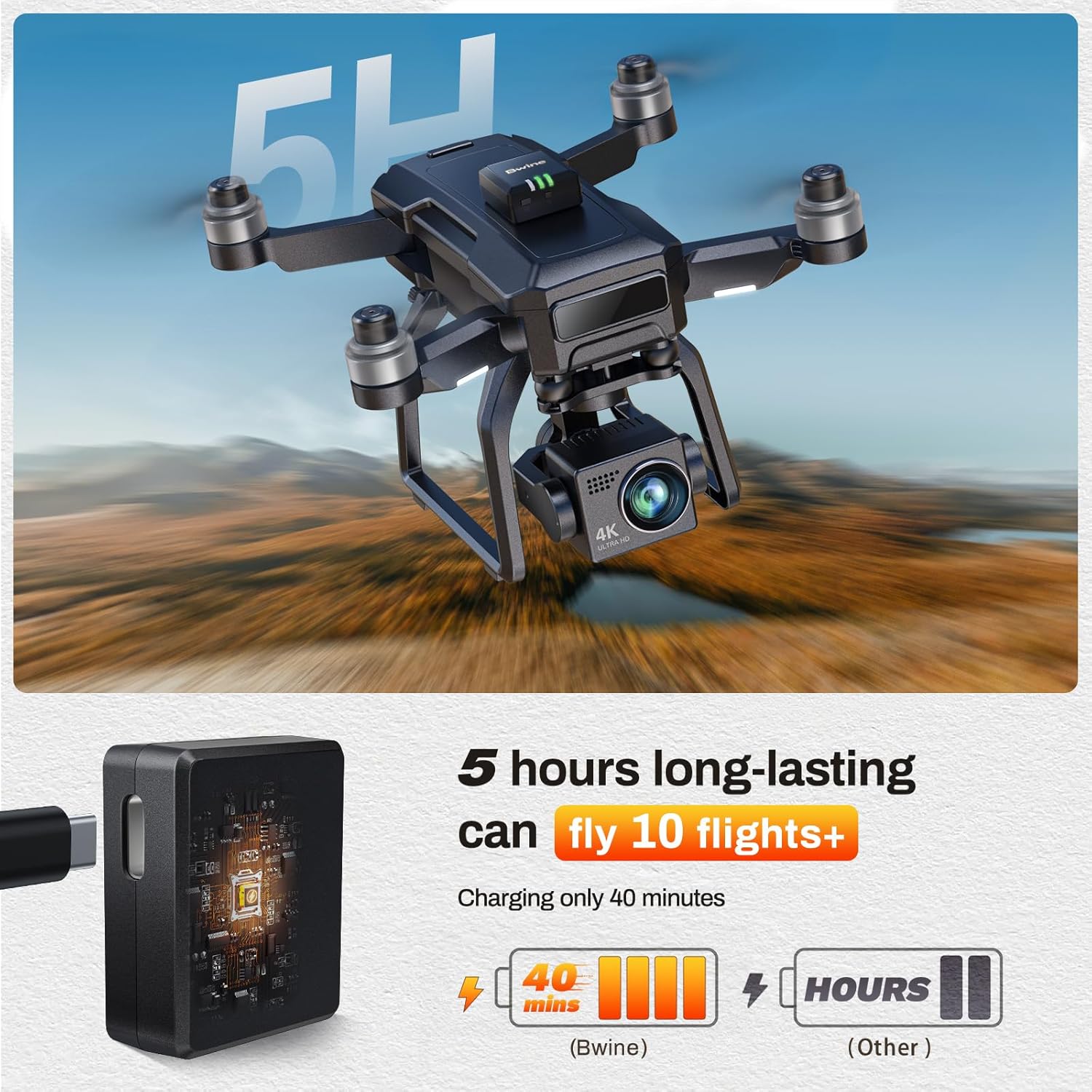 - Batería extendida de 5 horas: carga rápida de 40 minutos a través del cable tipo C incluido que alimenta 5 horas de uso continuo. Vuela más tiempo sin interrupciones de vuelo medio.