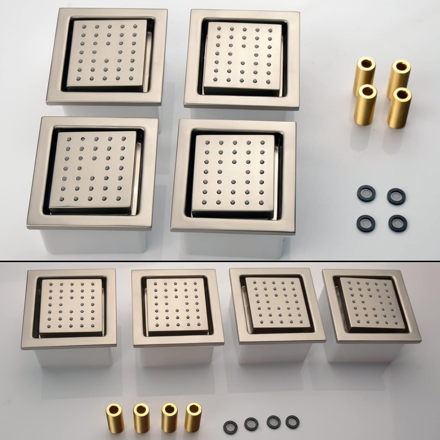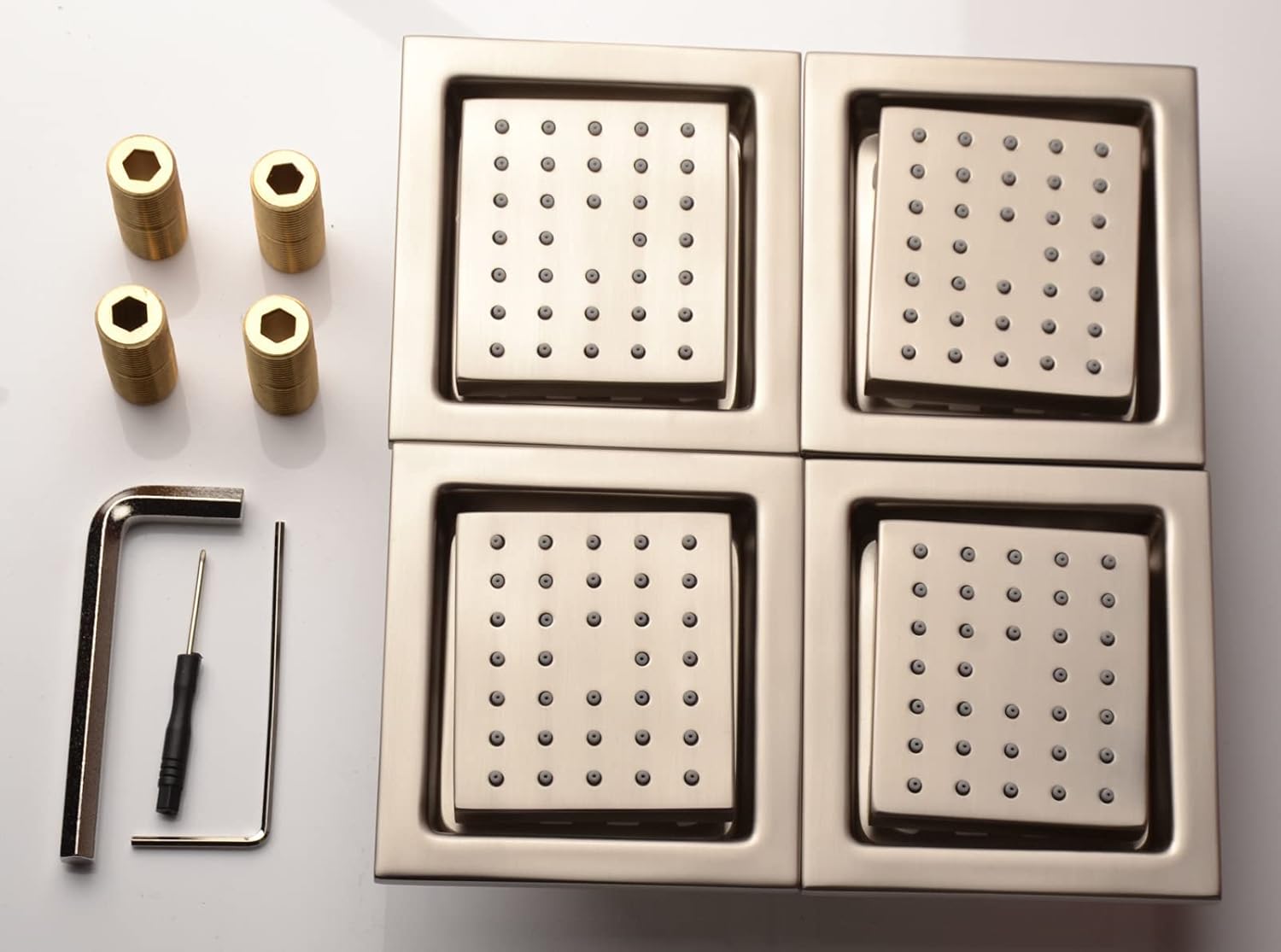 - Incluye: todos los accesorios necesarios para la instalación están incluidos. 4 chorros corporales (sin válvula de ducha