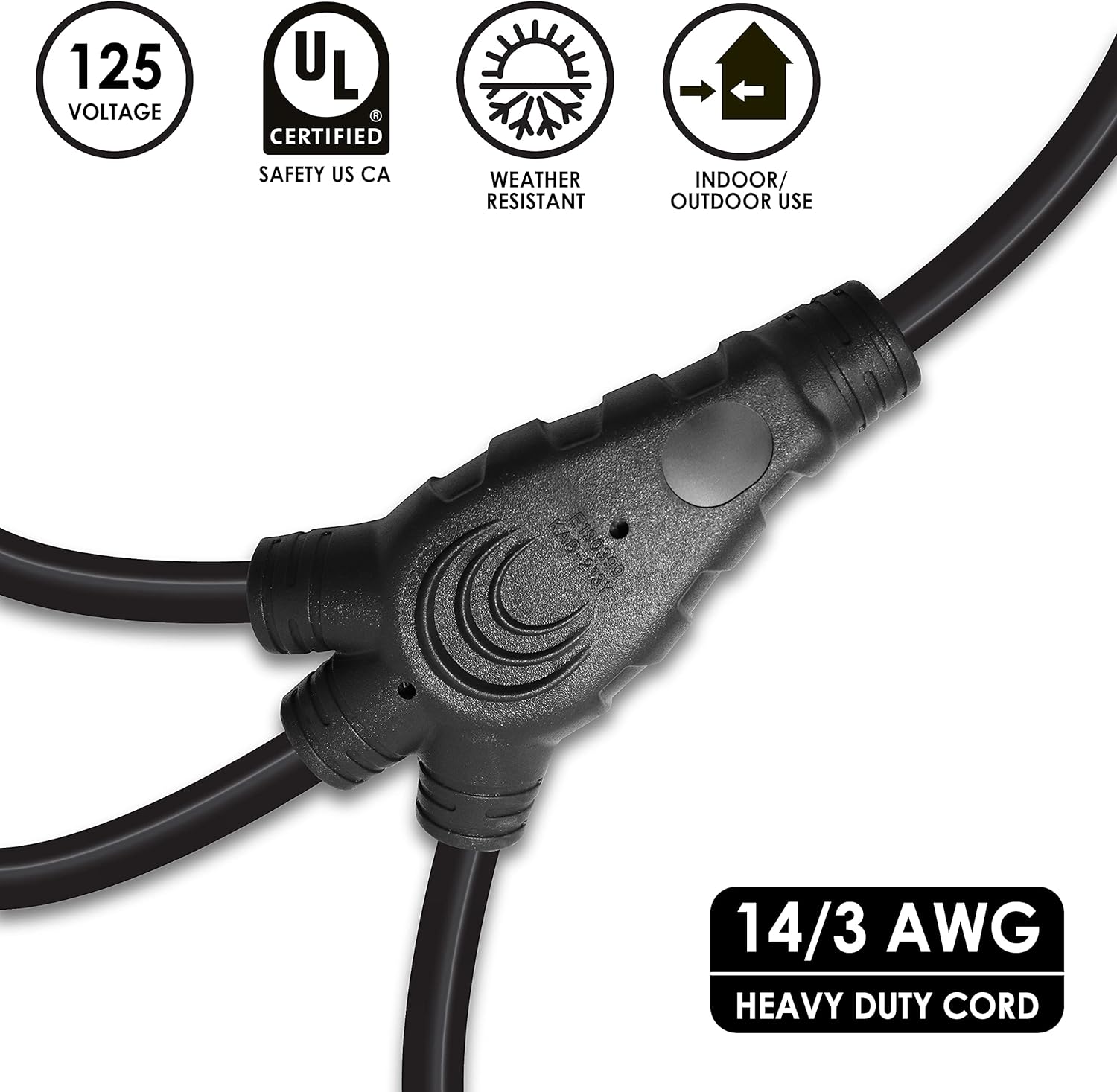 Cable de extensión de 3 direcciones 14/3 de 1 a 3 divisores de múltiples tomas, cable SJTW 14AWG, alcance de 14 pies 25 pies, 7.62m en total, interior y exterior, paisajismo, árboles de Navidad e iluminación, listado UL.