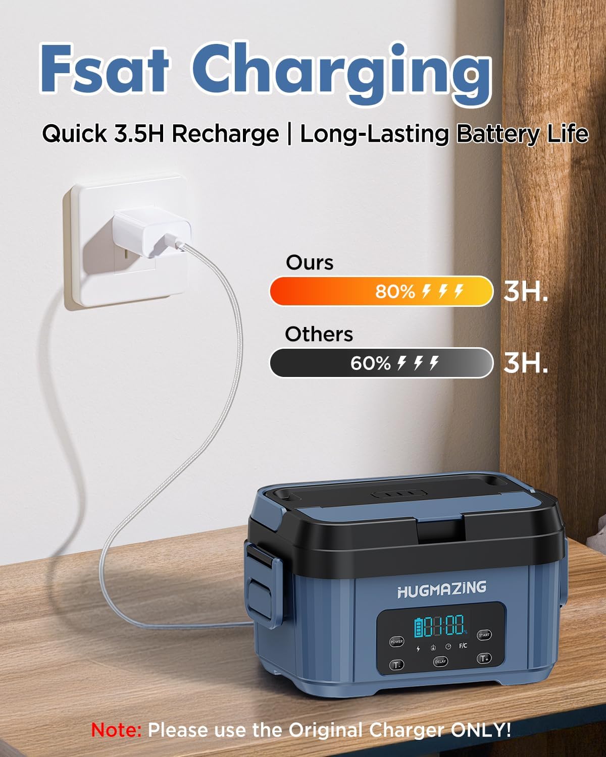 Calienta tu comida en cualquier lugar con esta innovadora caja de almuerzo eléctrica inalámbrica. Diseñada para profesionales y estudiantes en movimiento, mantiene tus alimentos a la temperatura perfecta sin necesidad de cables. Su batería recargable garantiza horas de funcionamiento, mientras que su elegante acabado azul combina estilo con practicidad. Compacta y fácil de transportar, es la solución ideal para disfrutar de comidas caseras calientes durante tu jornada laboral o escolar.