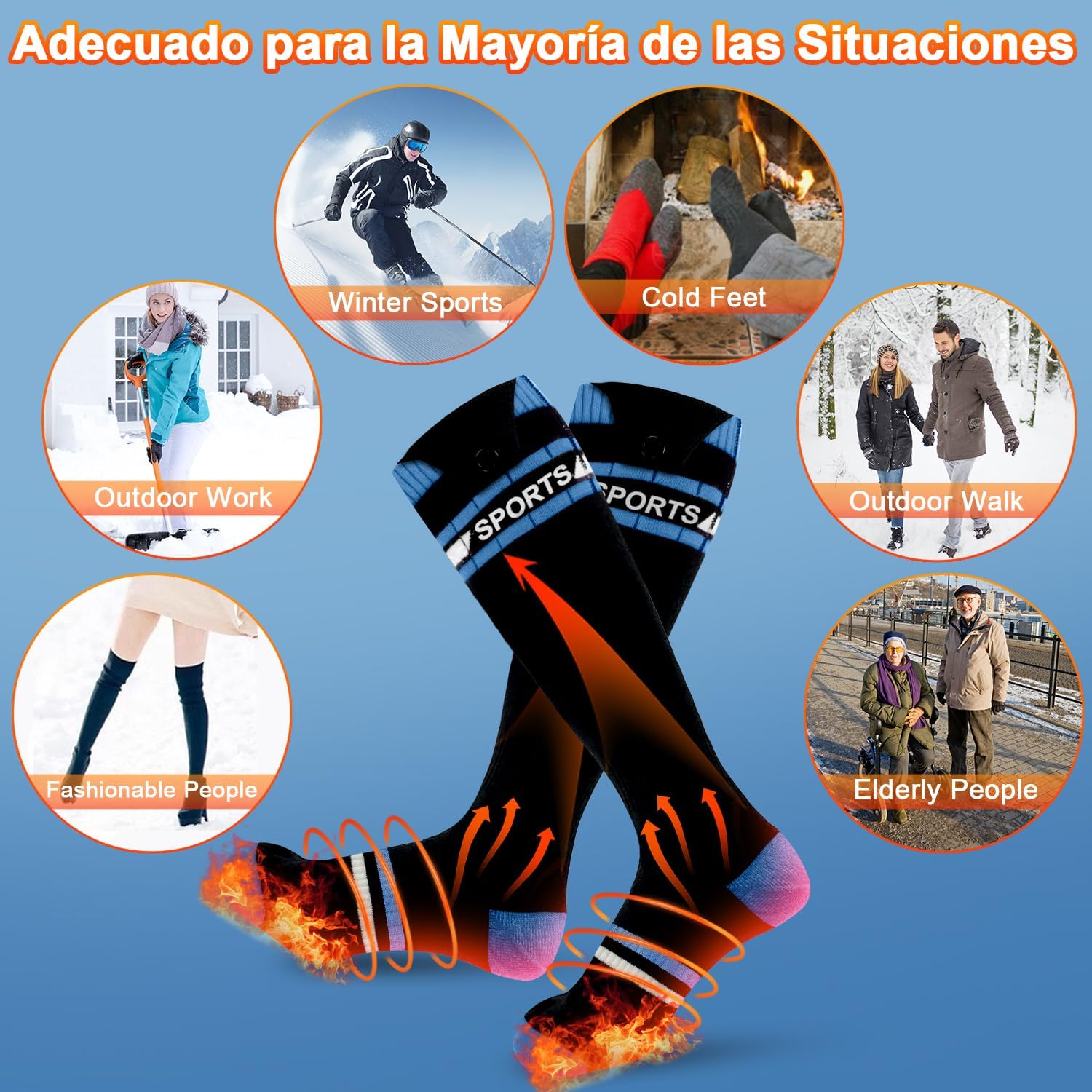 - Talla unisex & Lavables y resistentes a la decoloración: Nuestros calcetines eléctricos con calefacción hechos con tejido de alta elasticidad científicamente mezclado, son adecuados tanto para hombres como para mujeres de todas las tallas. Estos calcetines con calefacción son esenciales para hombres y mujeres durante el esquí, senderismo y camping al aire libre, y también son ideales para las personas mayores y los trabajadores al aire libre