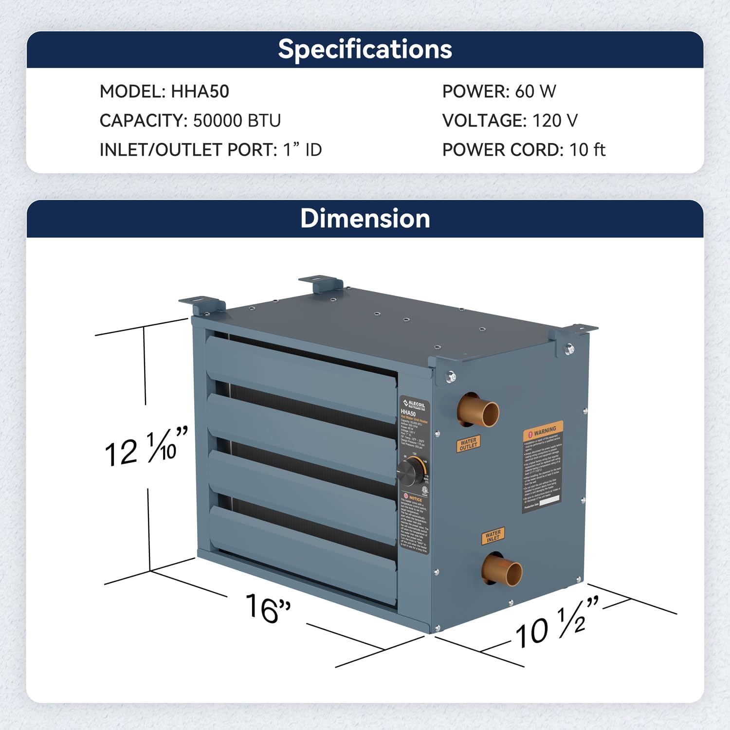 - Rendimiento excepcional: El calentador de unidad colgante de agua caliente ALECOIL utiliza la energía de la fuente de agua caliente de un edificio (calderas de madera al aire última intervensión) para ofrecer un funcionamiento eficiente y silencioso y viene con el interruptor de control de temperatura, detectando la temperatura de la entrada de agua para controlar el arranque y apagado del ventilador, proporciona una manera simple de ajustar la temperatura deseada, maximizar la comodidad de la habitación y eficiencia de ahorro de energía.